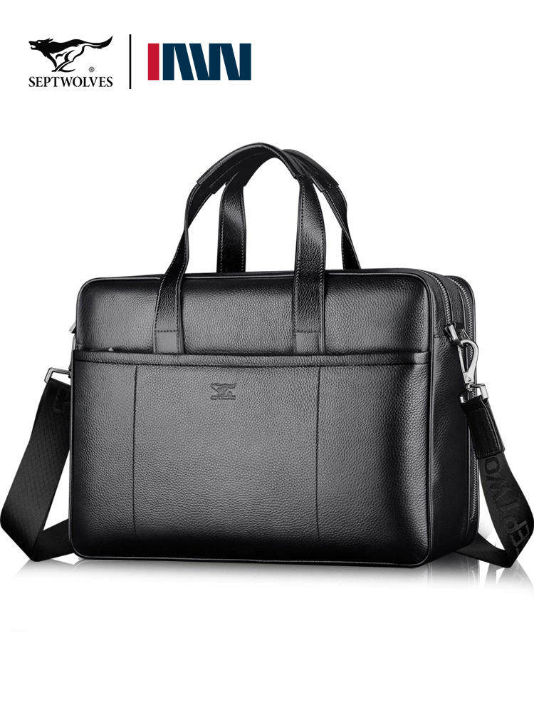 七匹狼男士包包手提包男商务公文包真皮皮包手拿电脑包单肩斜跨包