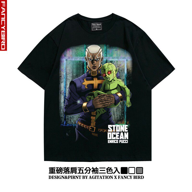 jojo的奇妙冒险石之海神父元动漫重磅纯棉短半袖T恤落肩宽松男夏