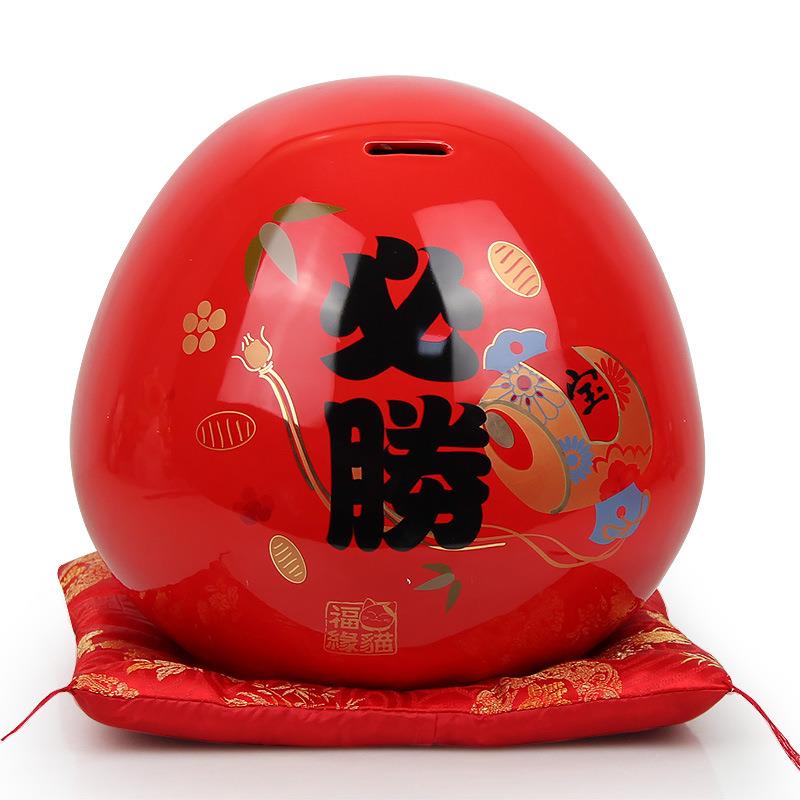 乐喵福缘开运达摩招财摆件店铺开业日式寿司店装饰中号陶瓷储蓄罐