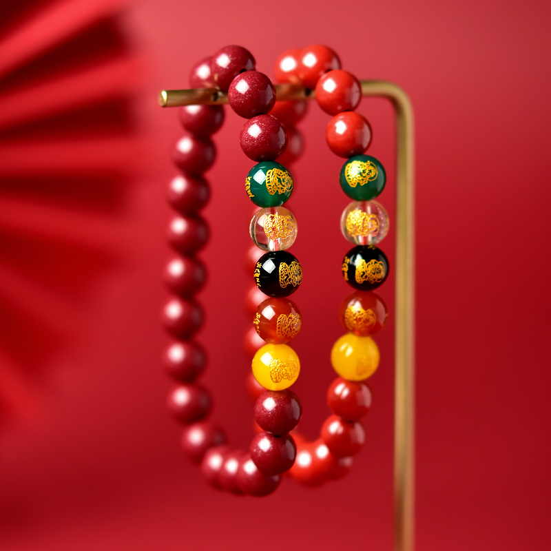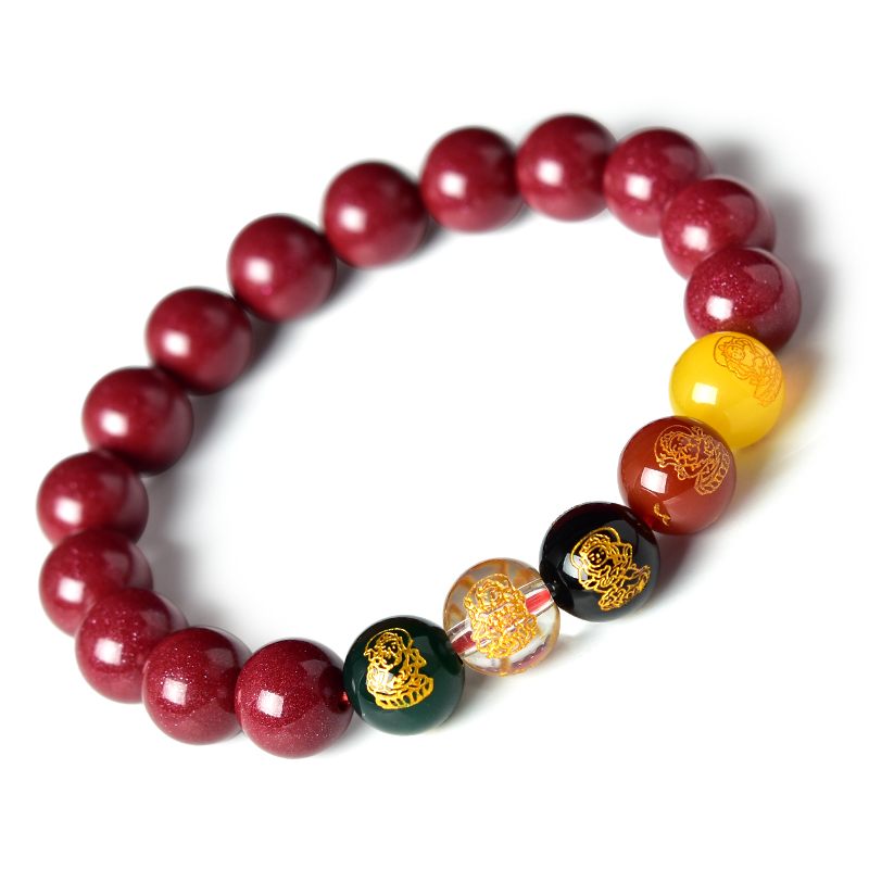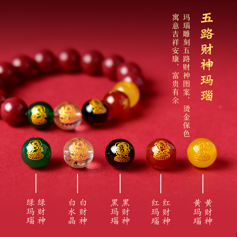 朱砂手串女男2025蛇本命年帝王砂紫金砂散珠玛瑙太岁五路财神手链