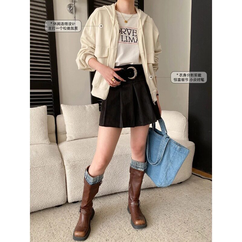 随性自在 立裁分割小众设计休闲运动风连帽卫衣外套