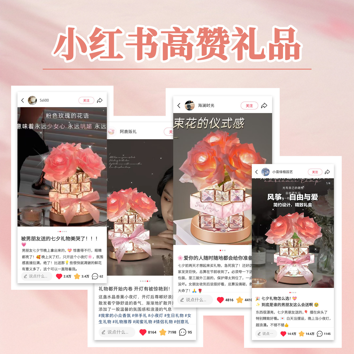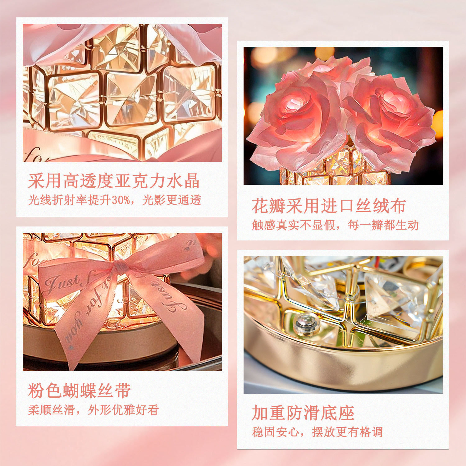 玫瑰花小夜灯卧室床头装饰灯送女朋友生日礼物浪漫圣诞氛围水晶灯