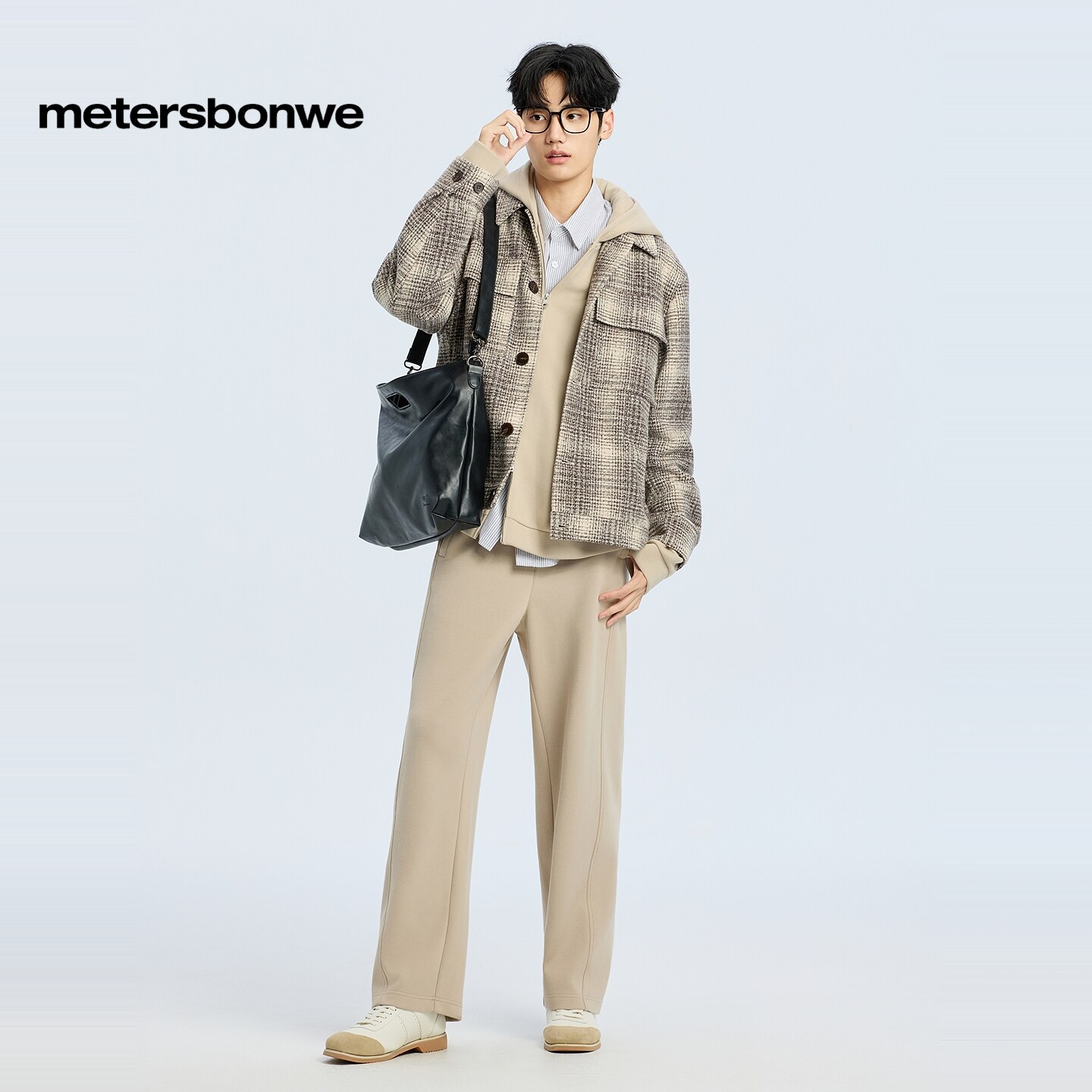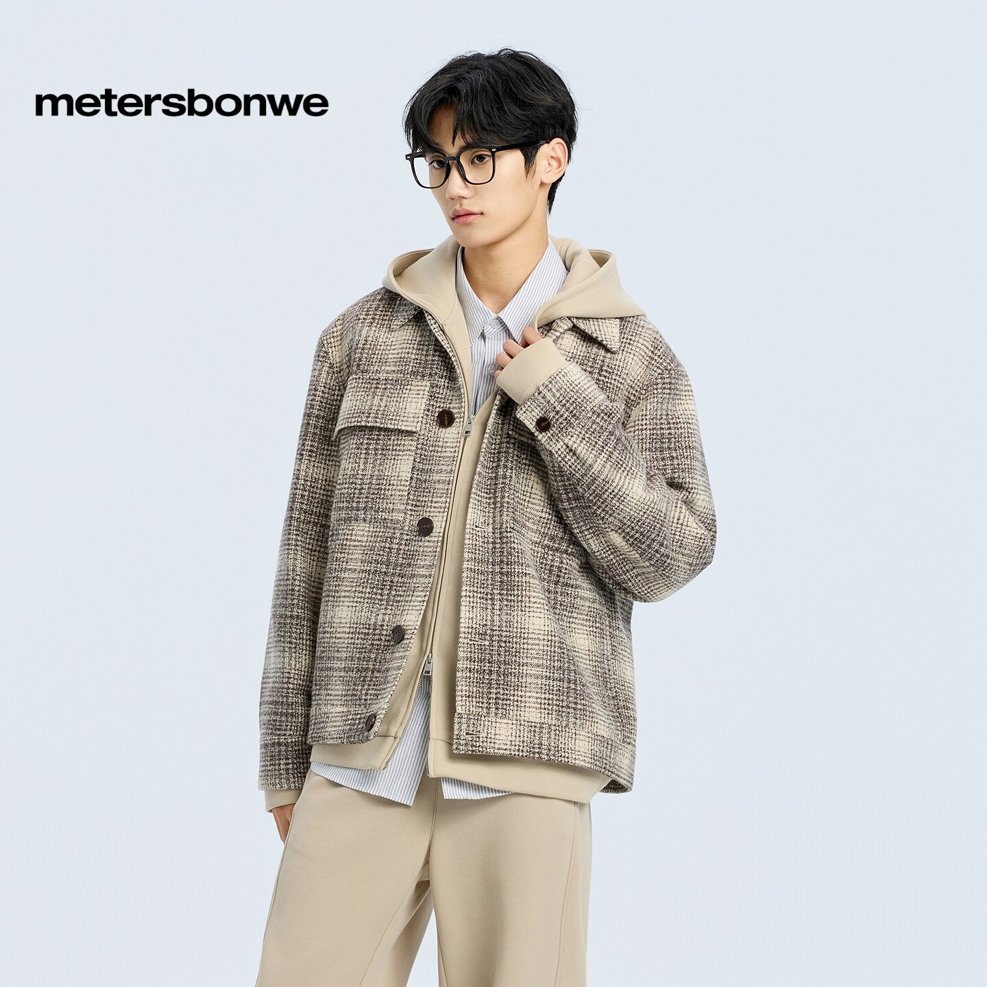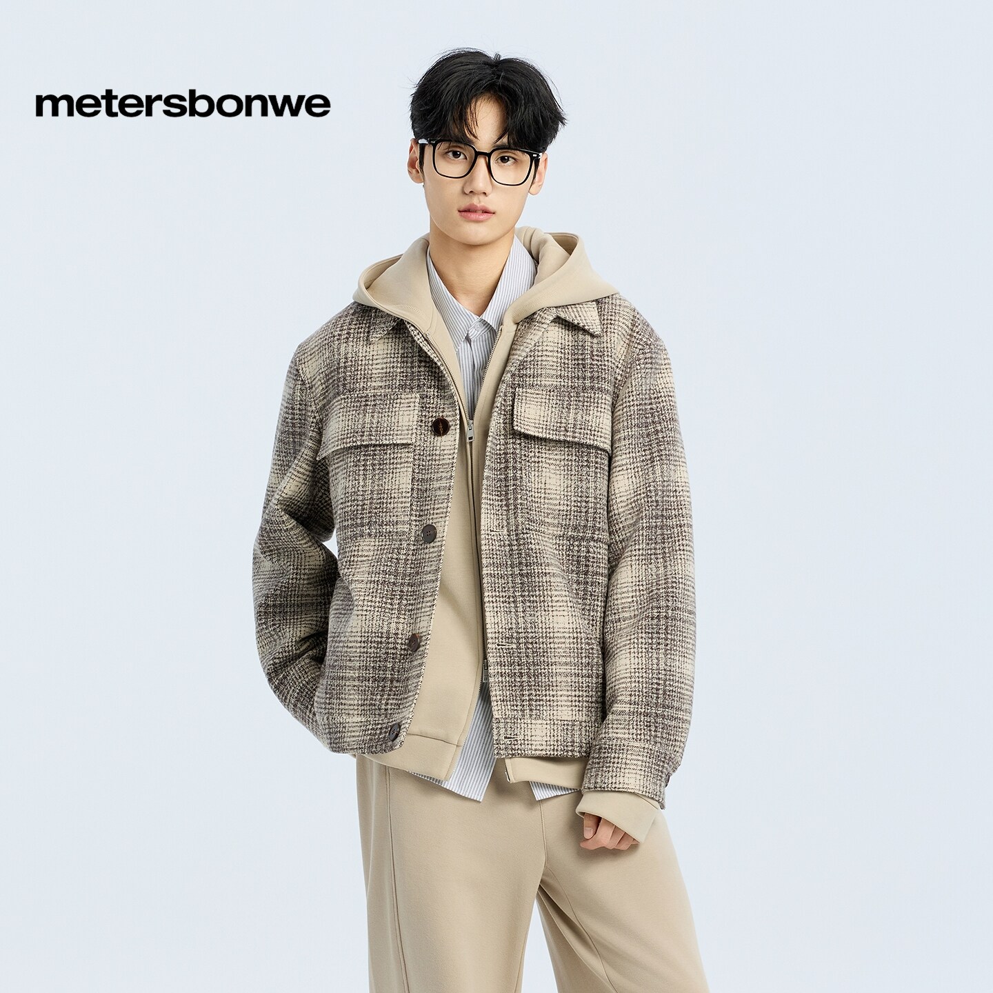 美特斯邦威夹克男2025秋冬新款休闲通勤美式格子学院风舒适外套男