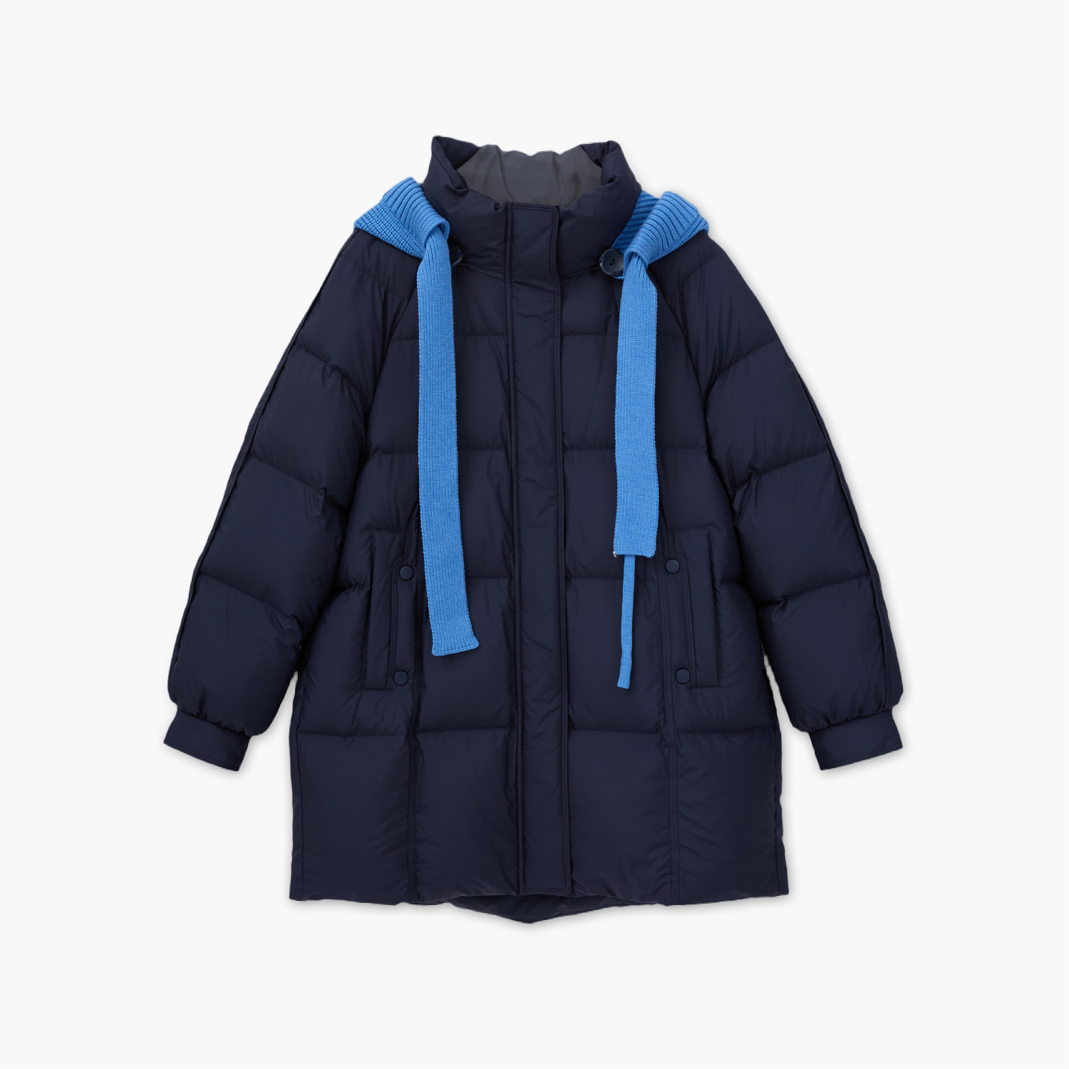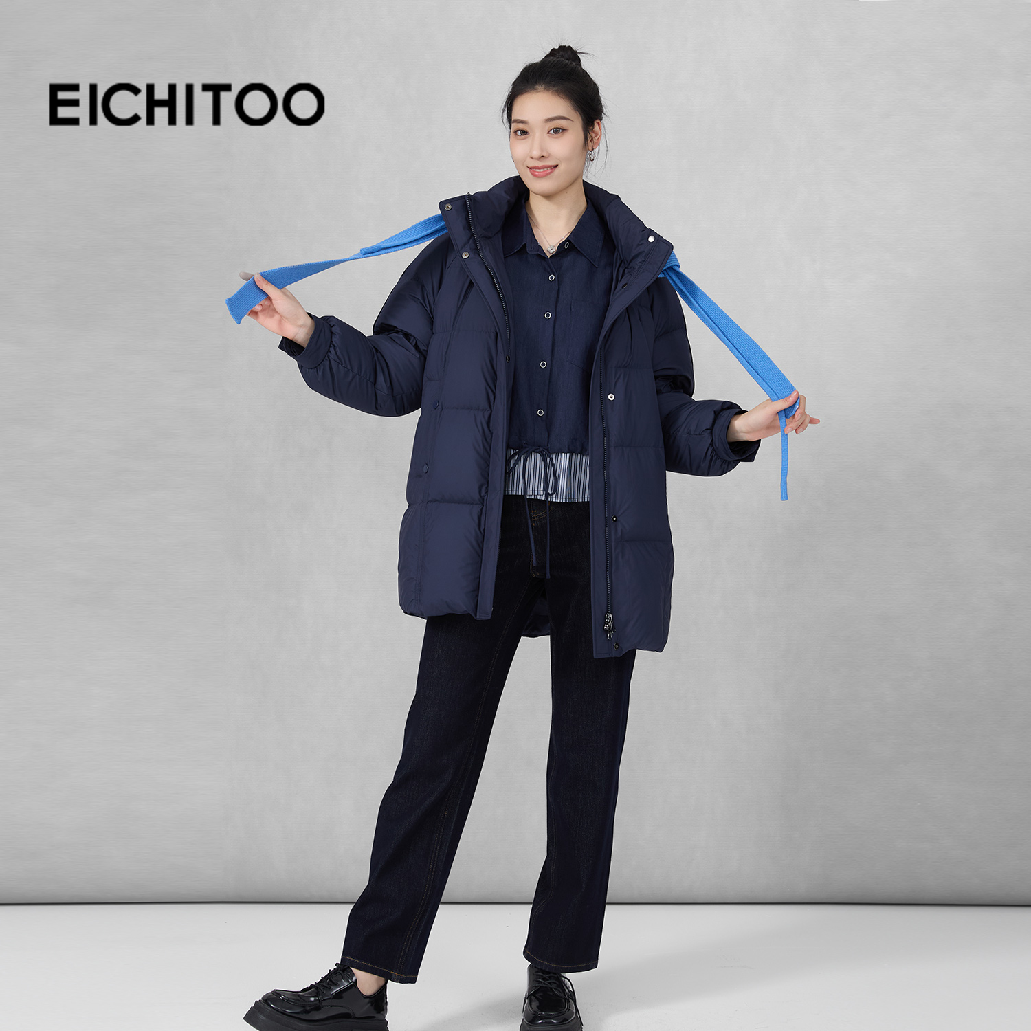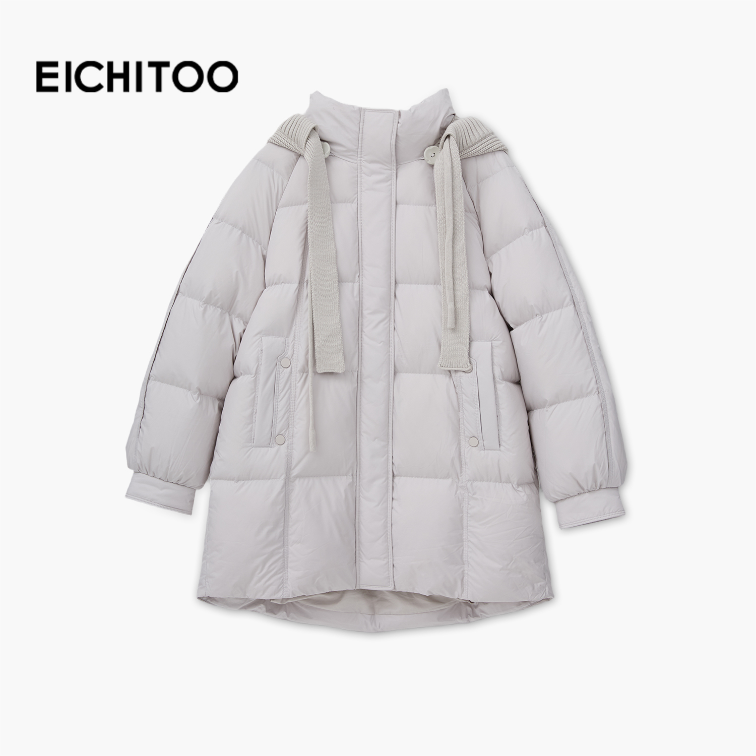 爱居兔简约时尚中长款羽绒服2025年冬季新款女针织可脱卸连帽外套
