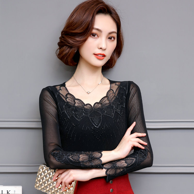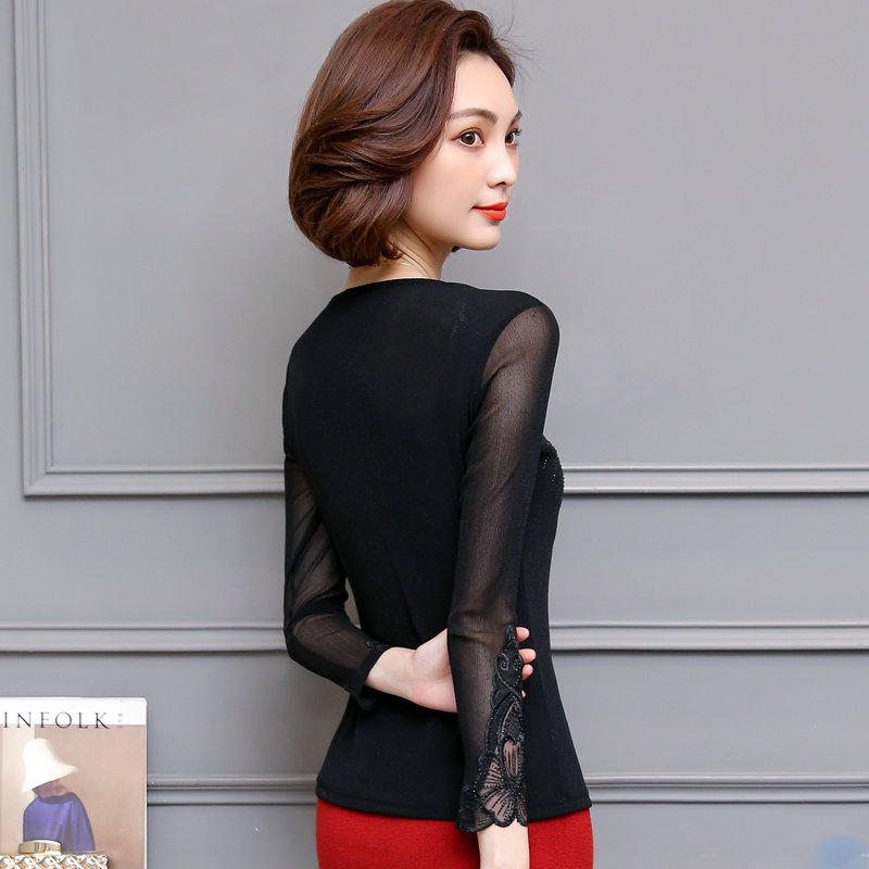 蕾丝打底衫女长袖短款2025秋季新款百搭网纱上衣加绒低领亮丝T恤
