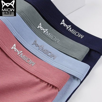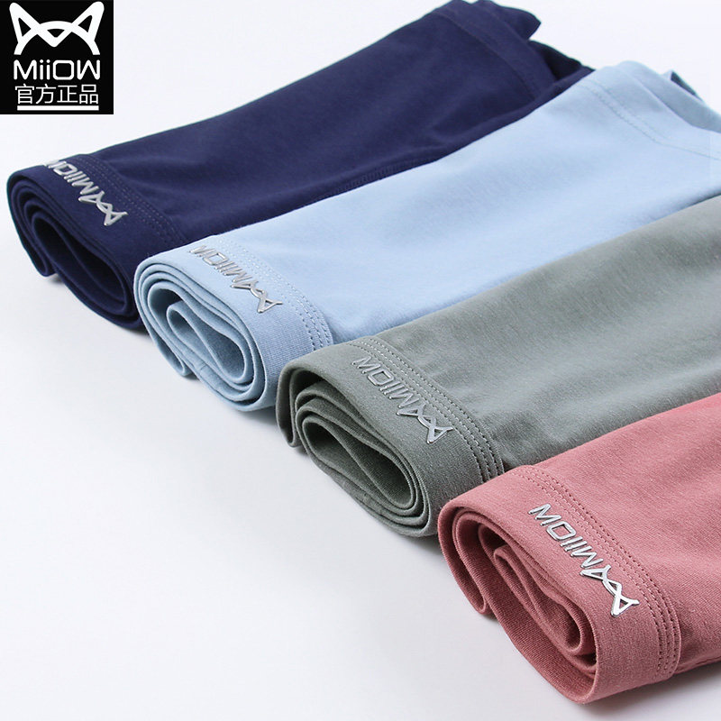 猫人正品纯棉内裤男纯棉抗菌裆平角裤男生中腰款透气四角短裤头