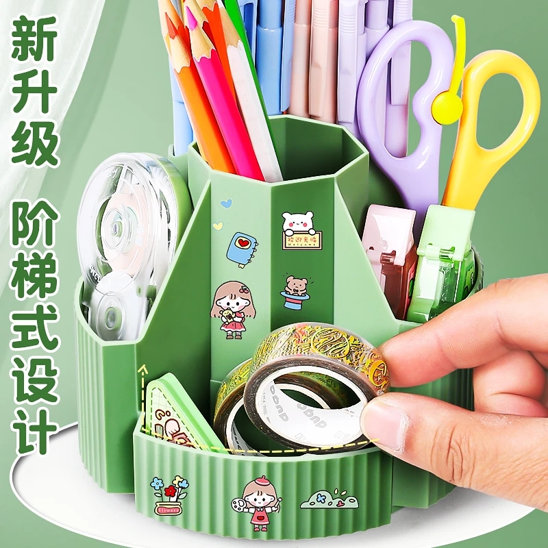 创意旋转笔筒阶梯式大容量收纳盒小学生书桌笔桶桌面多功能笔盒