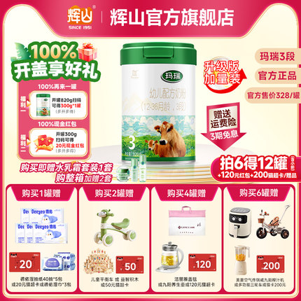 【升级版加量装】辉山奶粉旗舰店玛瑞3段新生儿牛奶粉820g罐装