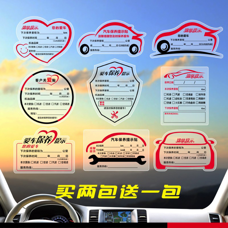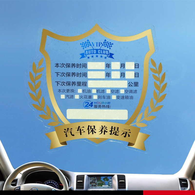 汽车保养提示贴静电贴玻璃维修厂换机油保养贴纸定制提醒卡订制