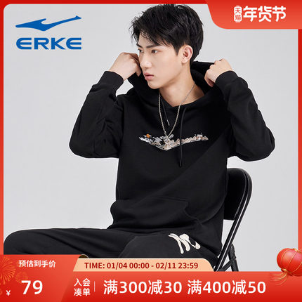 伍岳独尊丨鸿星尔克冬季新款男士国潮复古重磅宽松连帽卫衣男