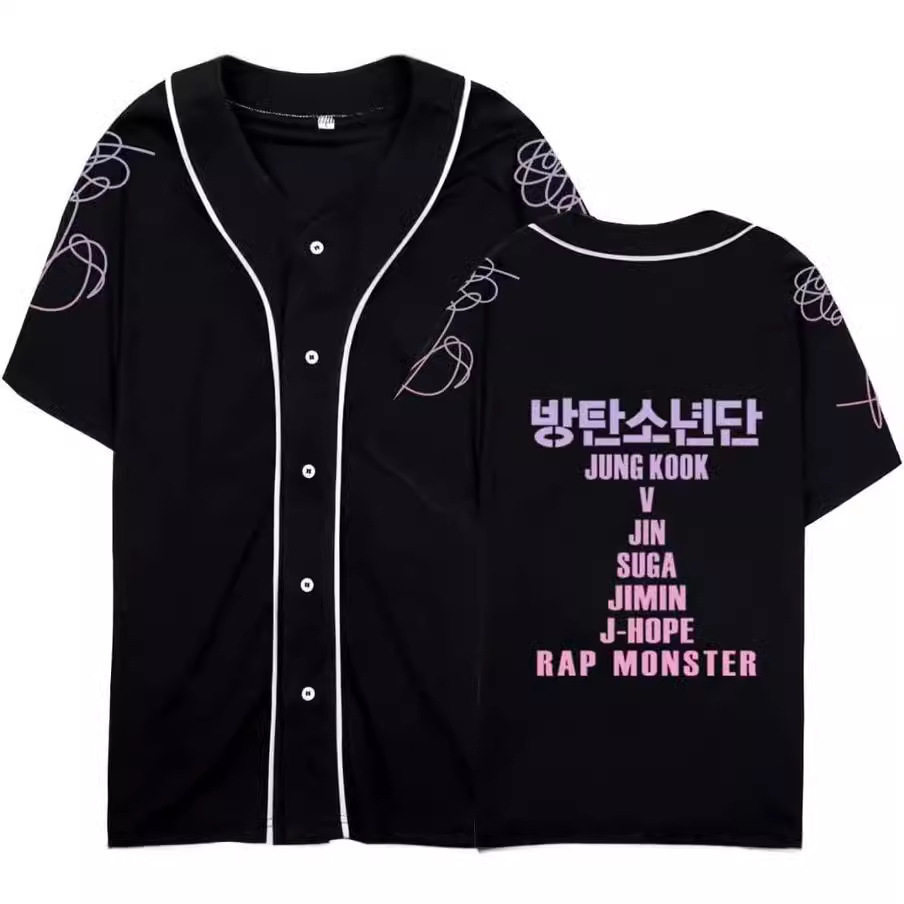 韩式棒球衫防弹少年团BTS棒球服系夏季3D数码印花短袖衬衫T桖
