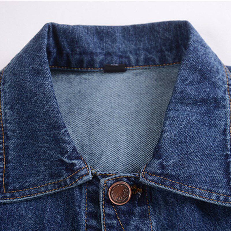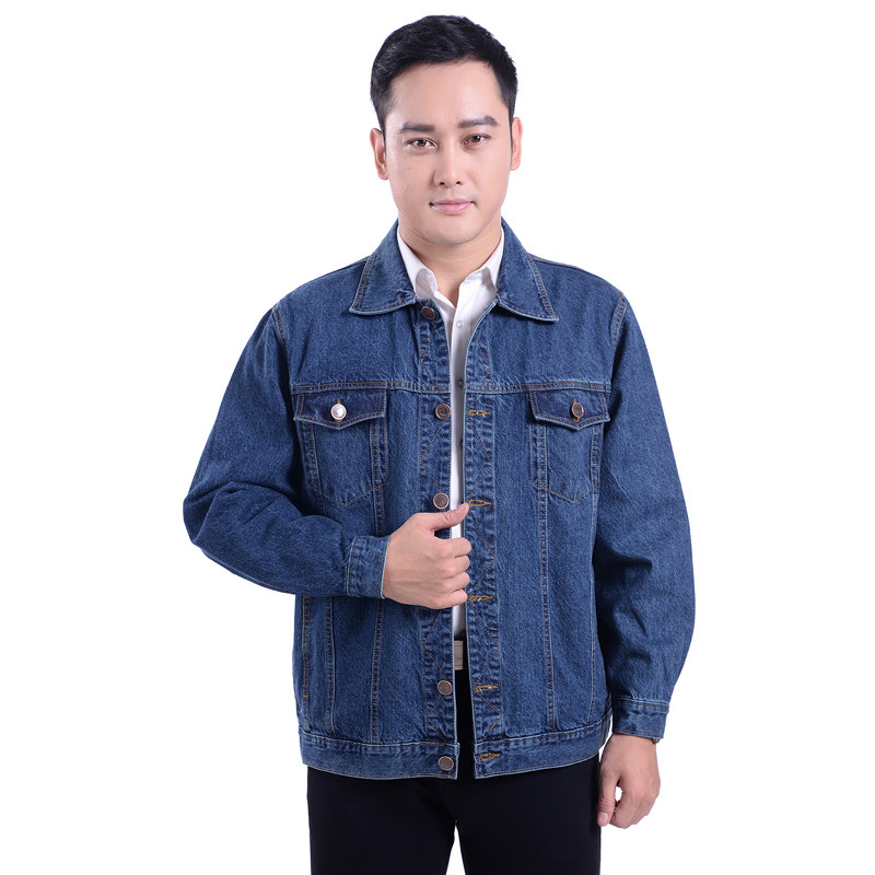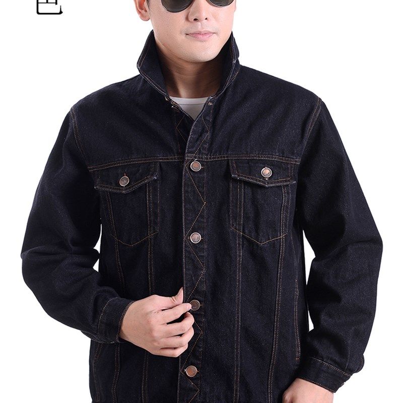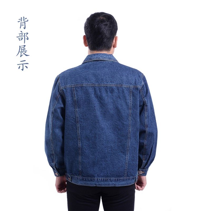 夹克男士牛仔褂外套纯棉工作服工装加厚电焊服翻领单排扣牛仔衣