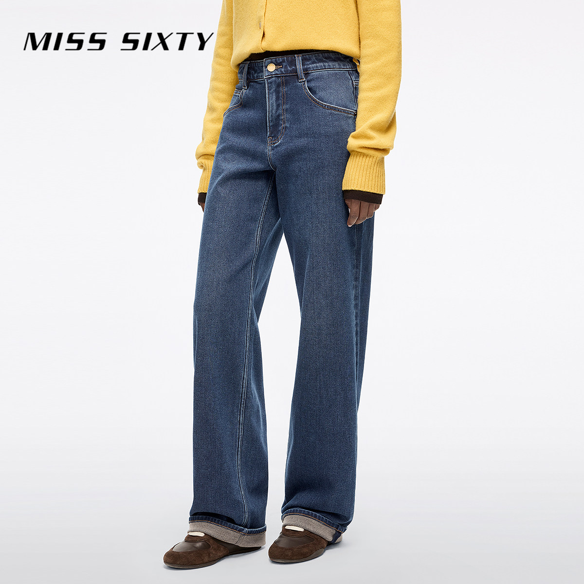 【保暖含羊驼毛】Miss Sixty2025冬季新款牛仔裤女显瘦直筒裤长裤