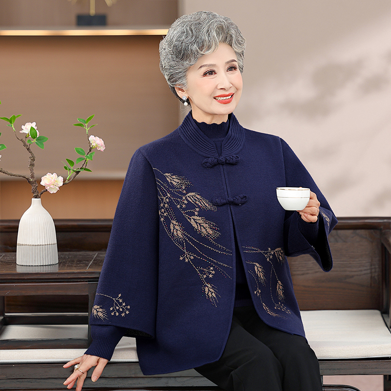 老年人春秋女装奶奶针织两件套装老太太妈妈洋气高档毛衣开衫外套
