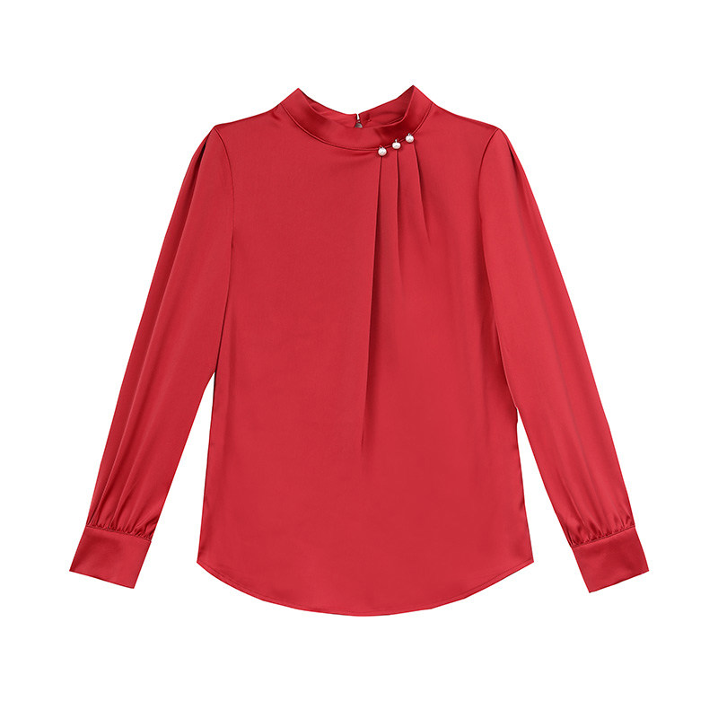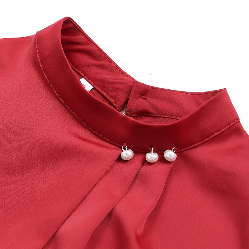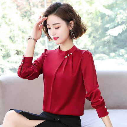 雪纺衬衫女长袖洋气打底内搭2025年春季秋新款韩版衬衣红色上衣寸