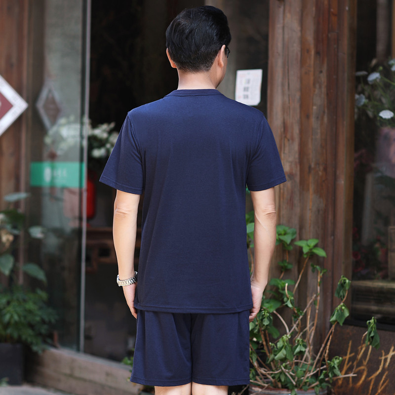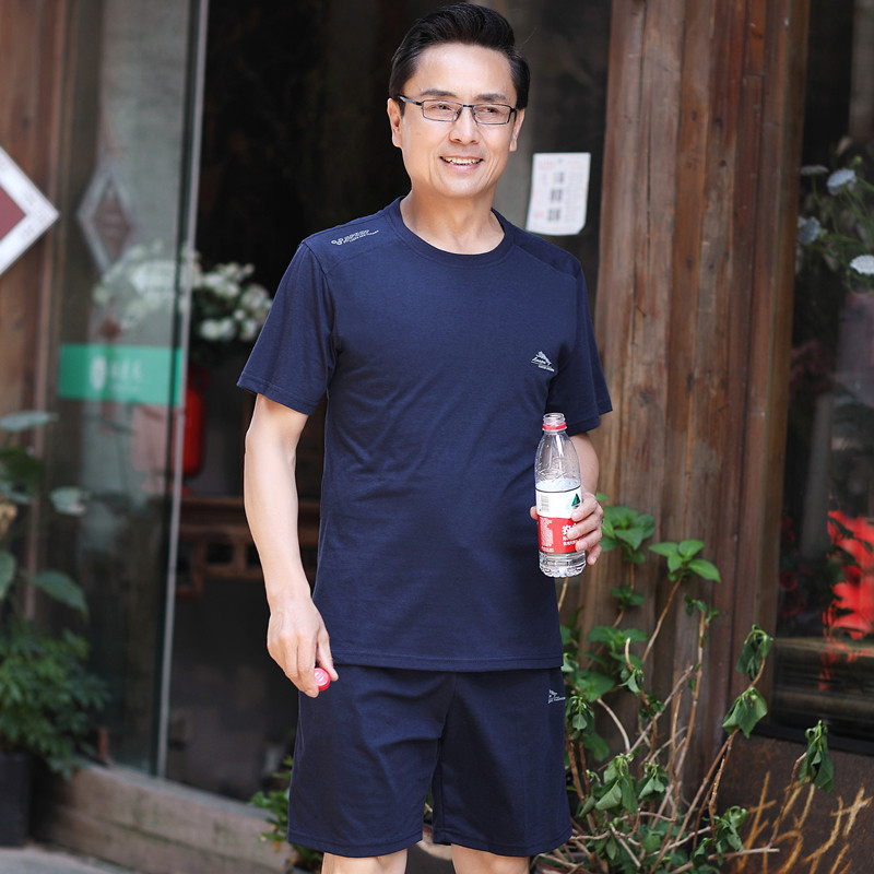 爸爸短袖短裤夏装纯棉运动服中老年人休闲运动套装中年男士两件套