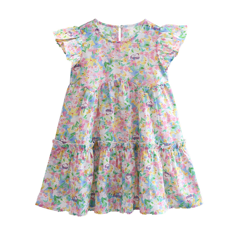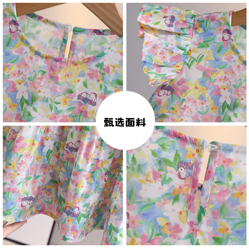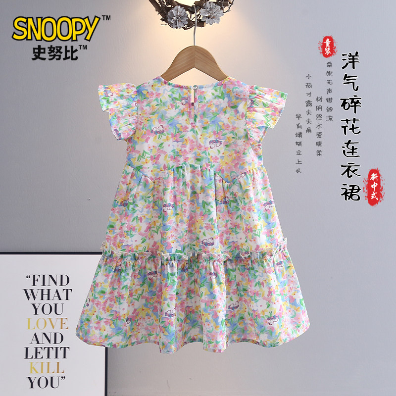 史努比女童连衣裙新款纯棉飞袖可爱童裙小女孩夏季甜美时尚碎花裙