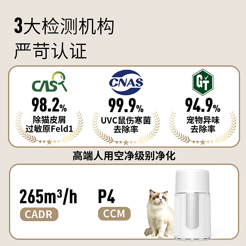 uah有哈宠物猫用空气净化器吸猫毛浮毛神器养宠专用除尘除臭菌