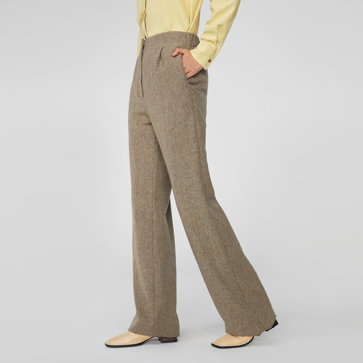 OVV秋冬热卖女装日本进口岗花呢面料后腰橡筋直筒休闲裤