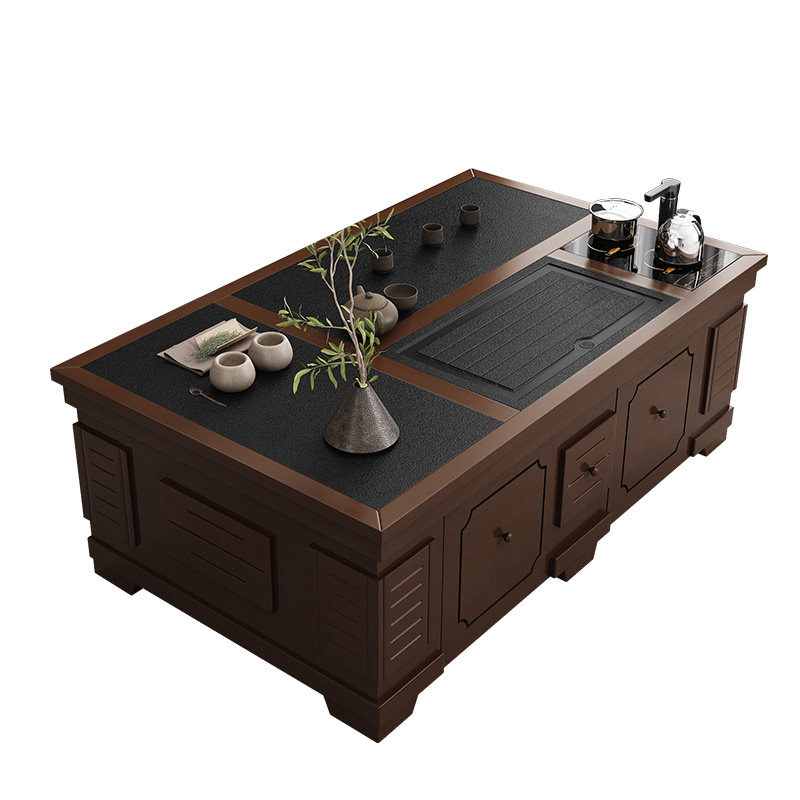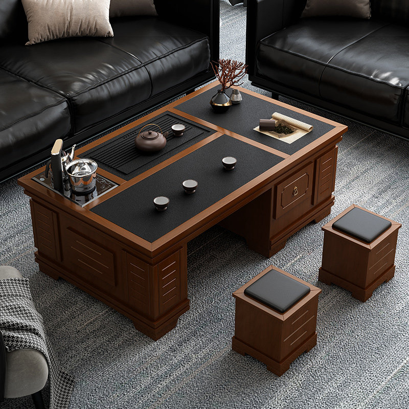 现代中式功夫实木茶几茶具一体客厅火烧石茶桌家用办公室泡茶台