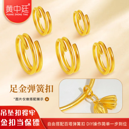 999足金黄金吊坠扣子项链连接环弹簧扣百搭双圈扣头手链DIY配件