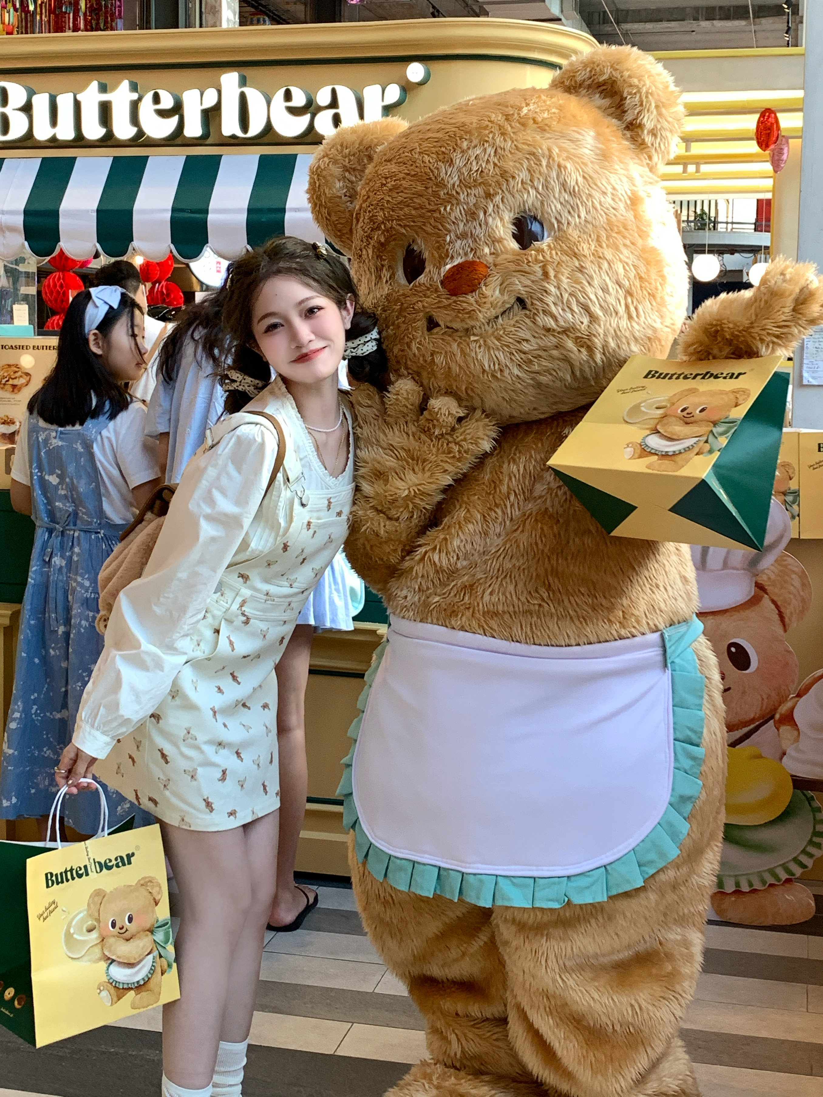 FFBLUE乖巧小熊复古背带裙