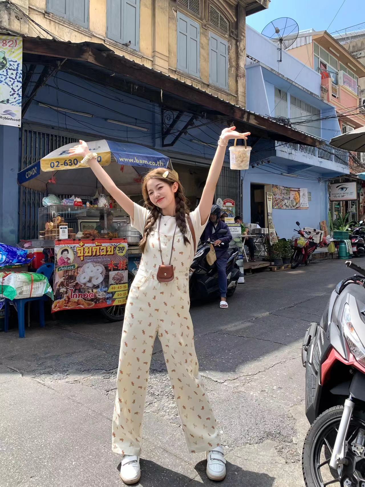 FF BLUE贝果泰迪 乖巧复古减龄可爱连衣裙学院风小熊印花背带裙女