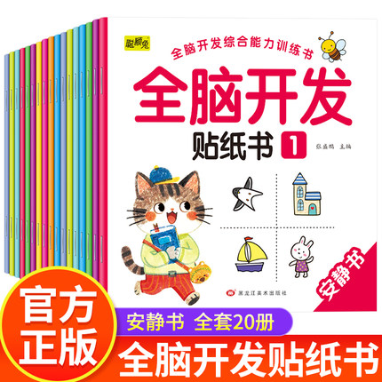 全套20册全脑开发贴纸书 幼儿专注力培养脑力开发综合能力训练书儿童趣味粘贴画动手动脑益智游戏安静书多元思维能力培养启蒙早教