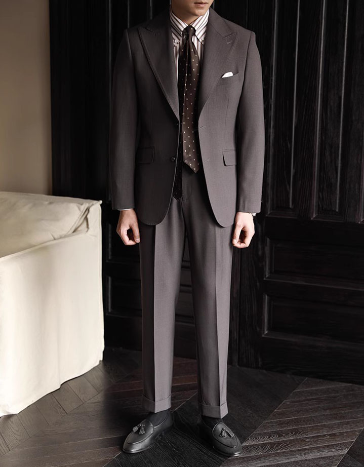 休闲戗驳领西装男春季双开衩单排扣青年上衣那不勒斯商务绅士外套