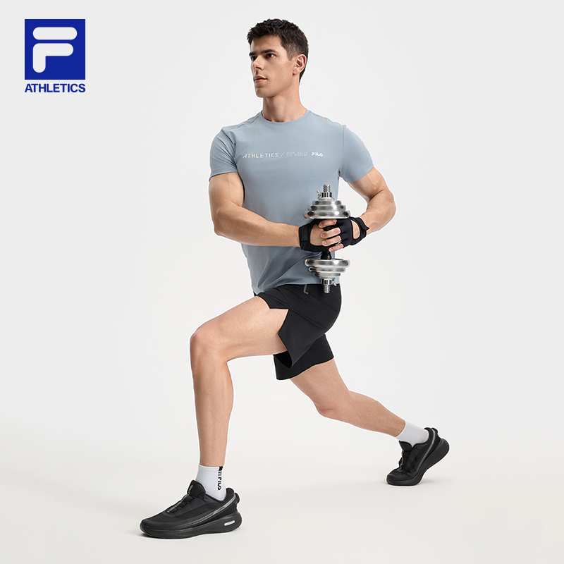 FILA 斐乐官方男子针织短袖衫2025秋新款健身运动简约基础干爽T恤