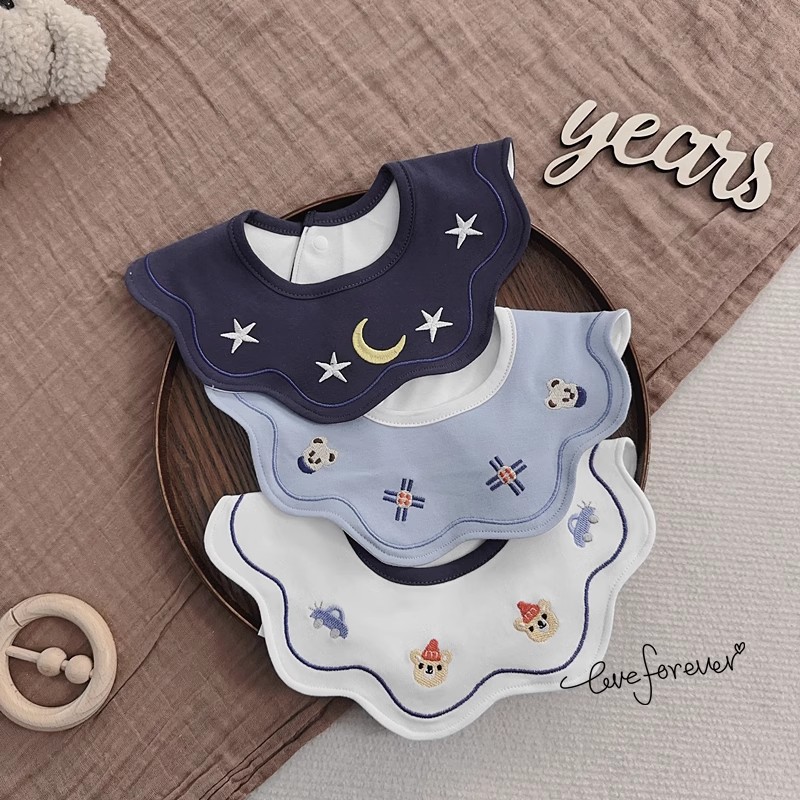 ins韩国小熊防水婴儿围嘴纯棉围兜柔软360度可旋转圆形花瓣口水巾