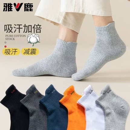 雅鹿袜子男中筒袜春秋季吸汗透气春夏季棉袜运动黑色男士秋冬长袜