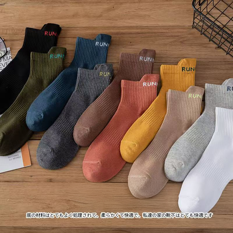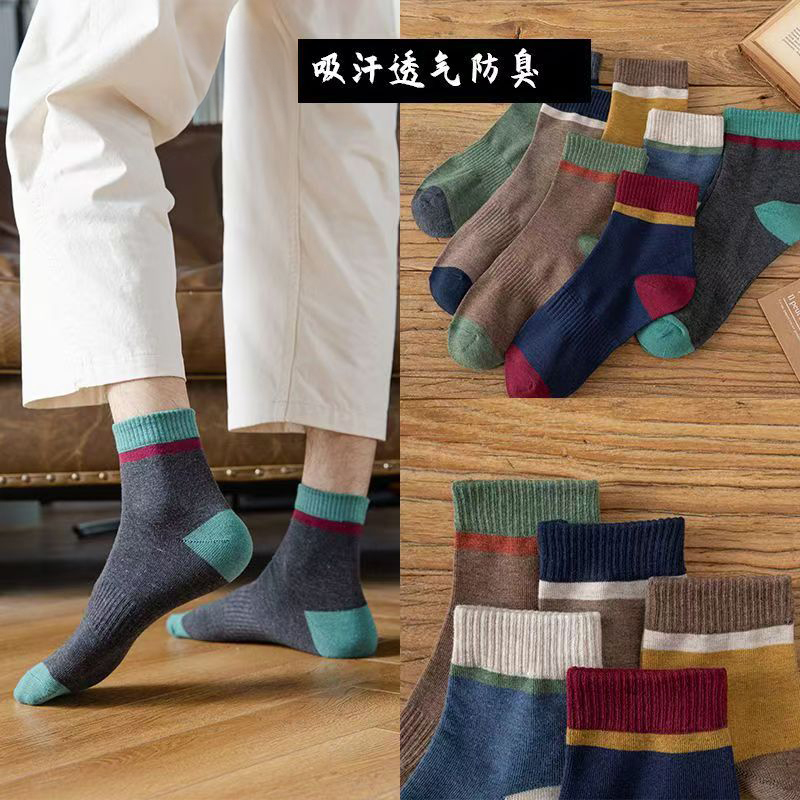 雅鹿吸汗透气男士棉袜中筒袜