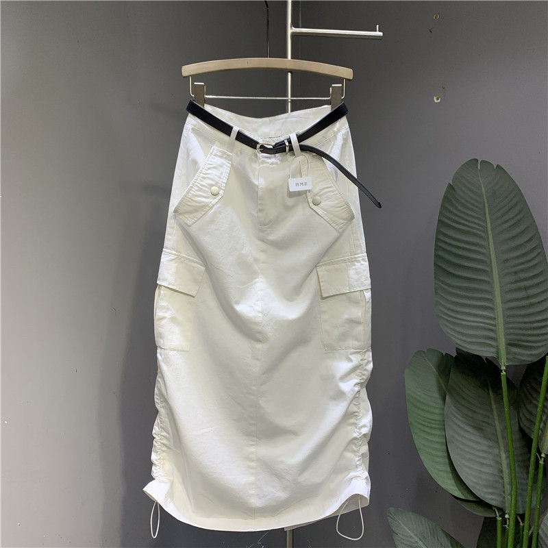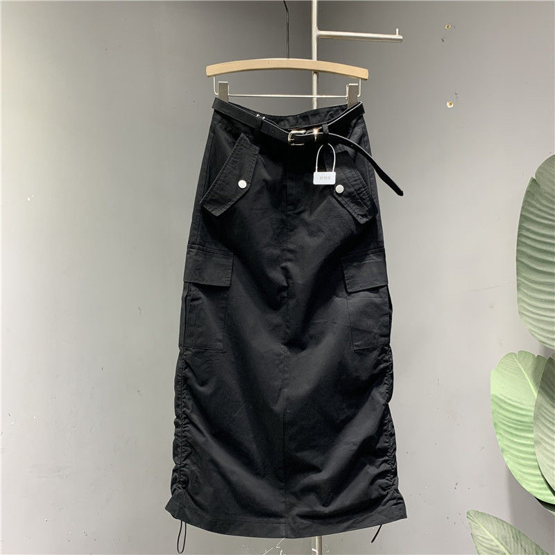 设计感抽绳工装半身裙女2025夏季薄款宽松休闲中长款显瘦包臀裙子