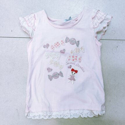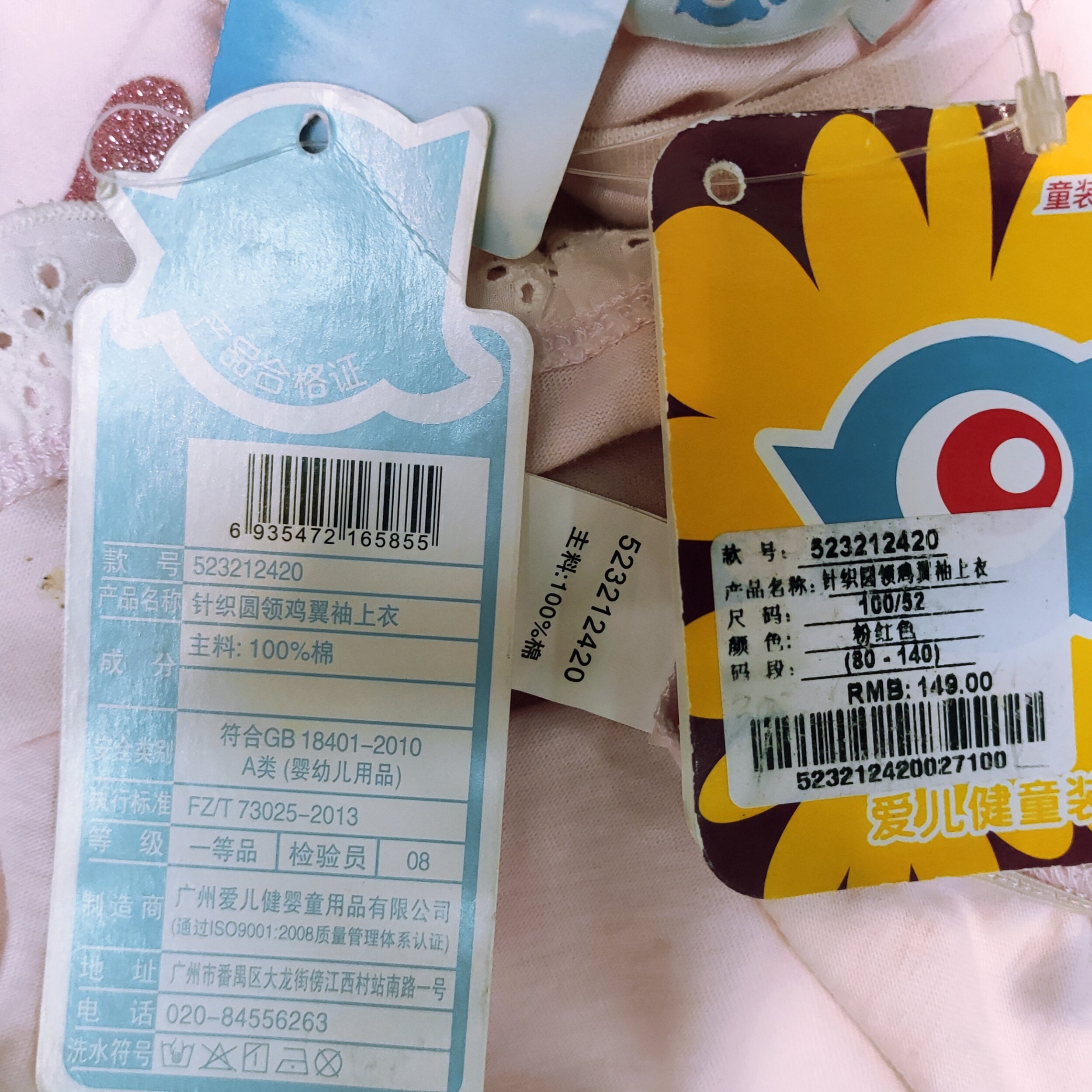 1.3折1爱儿健童装523212420夏装小中女童针织圆领鸡翼袖上衣短袖