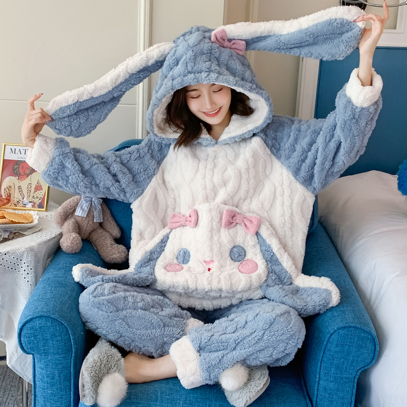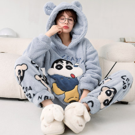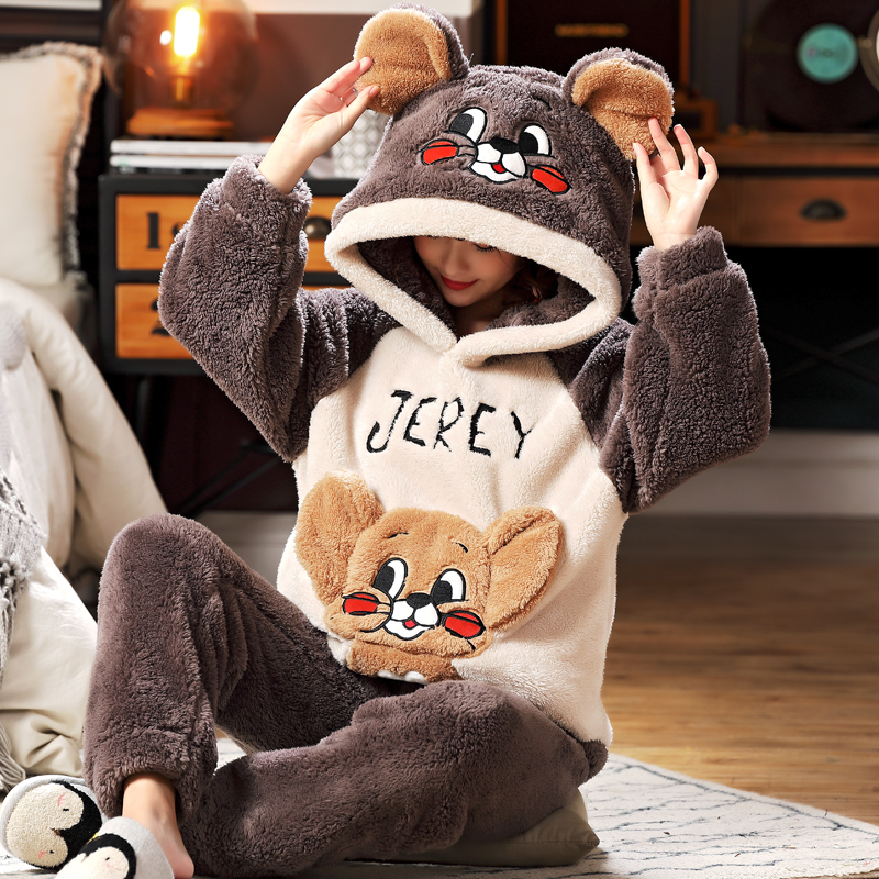 加厚珊瑚绒卡通家居服女士睡衣