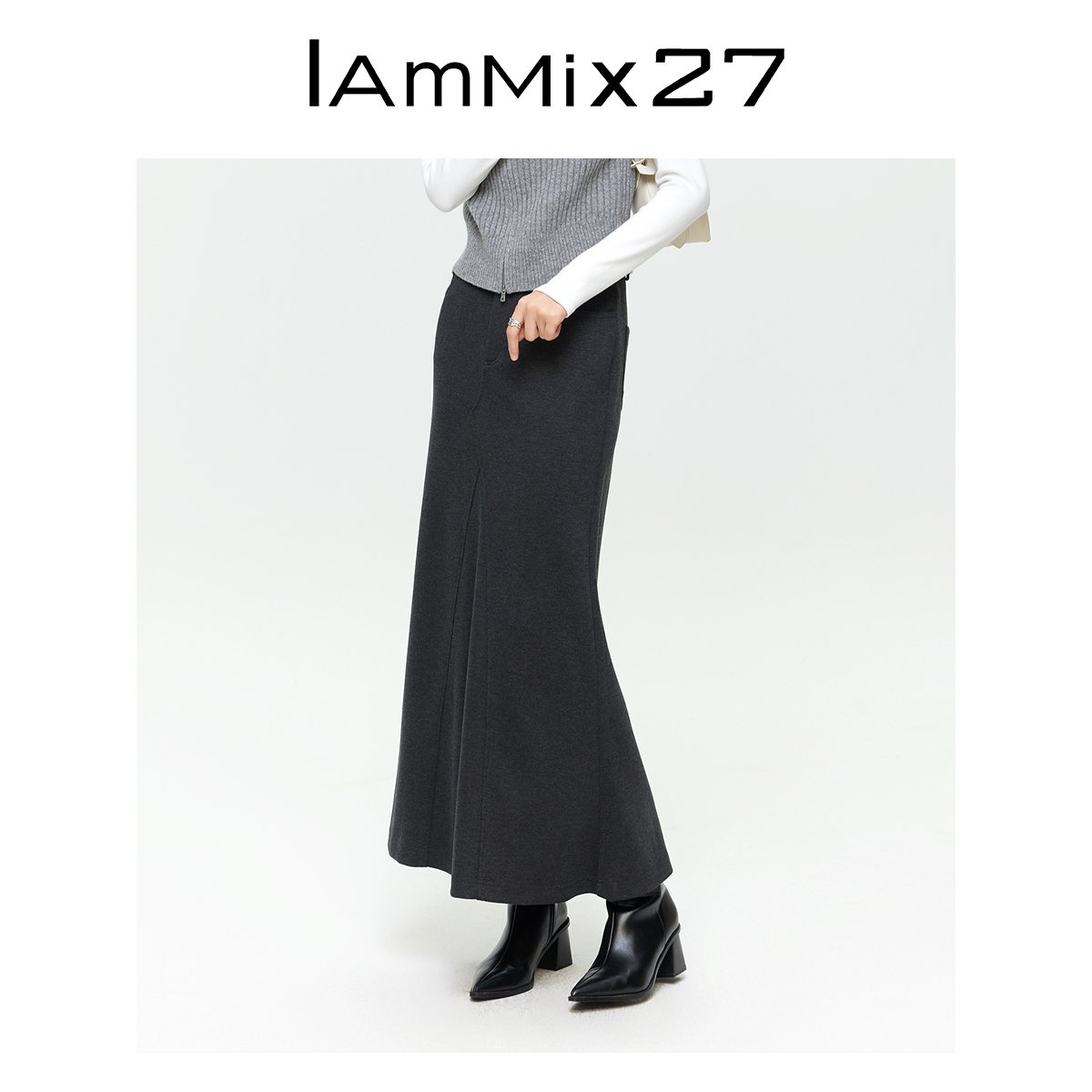 IAmMIX27冬季高腰毛呢半身裙女长款显瘦加厚包臀黑色鱼尾裙女长裙