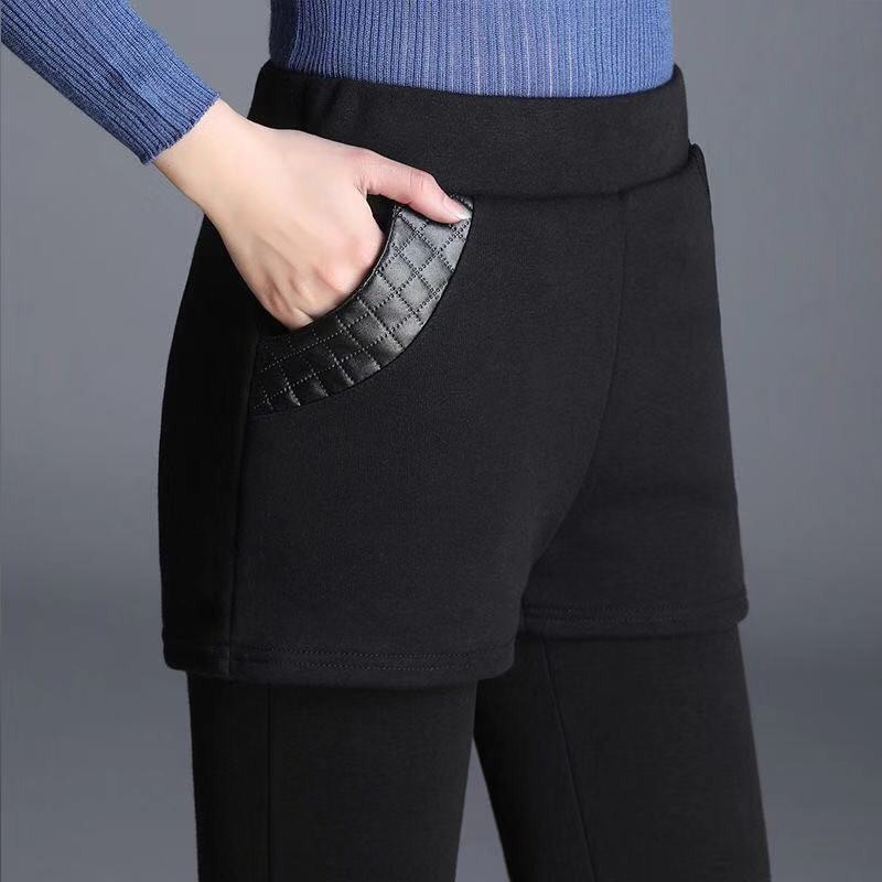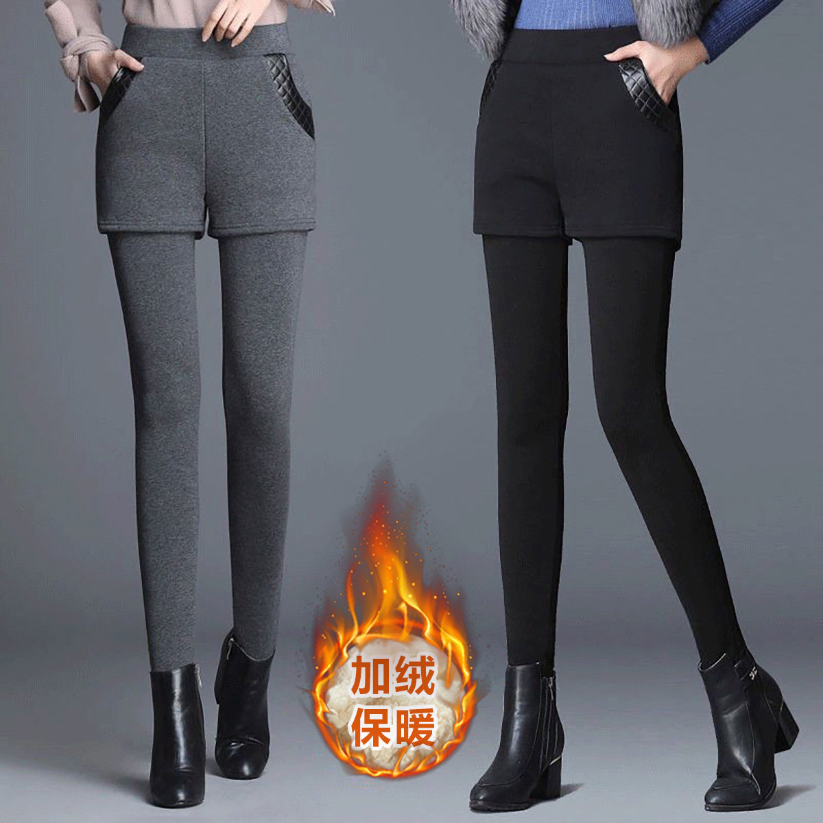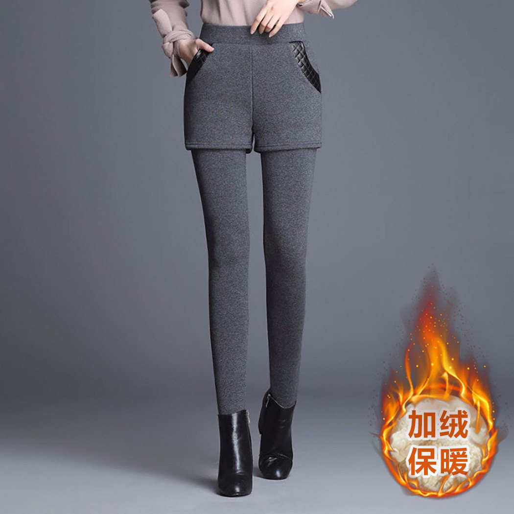 外穿裤裙羊羔绒假两件打底裤女裤冬季收腹加绒加厚保暖裤高腰弹力