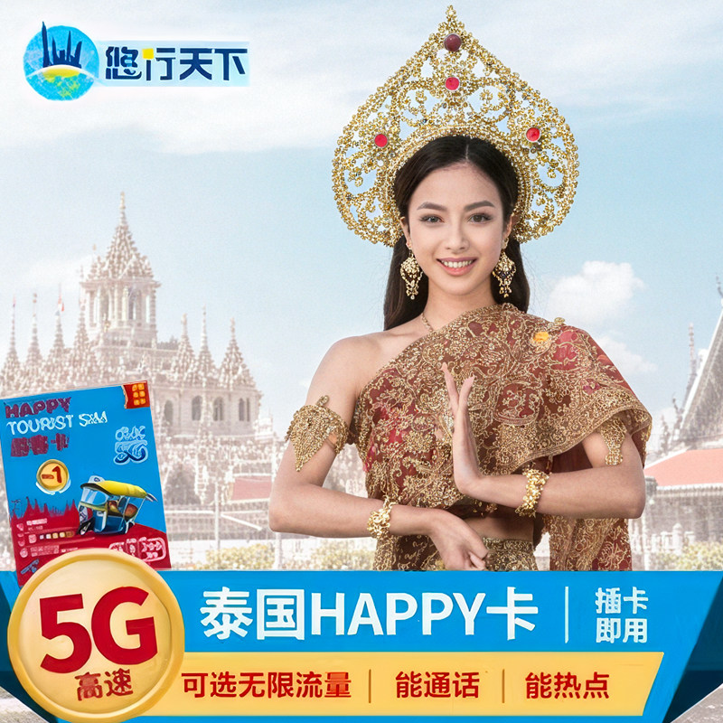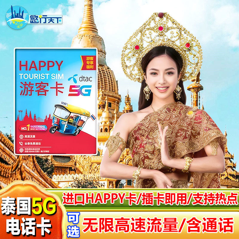 泰国电话卡Happy卡7/10/30天可选无限4G/5G流量上网流量手机sim卡