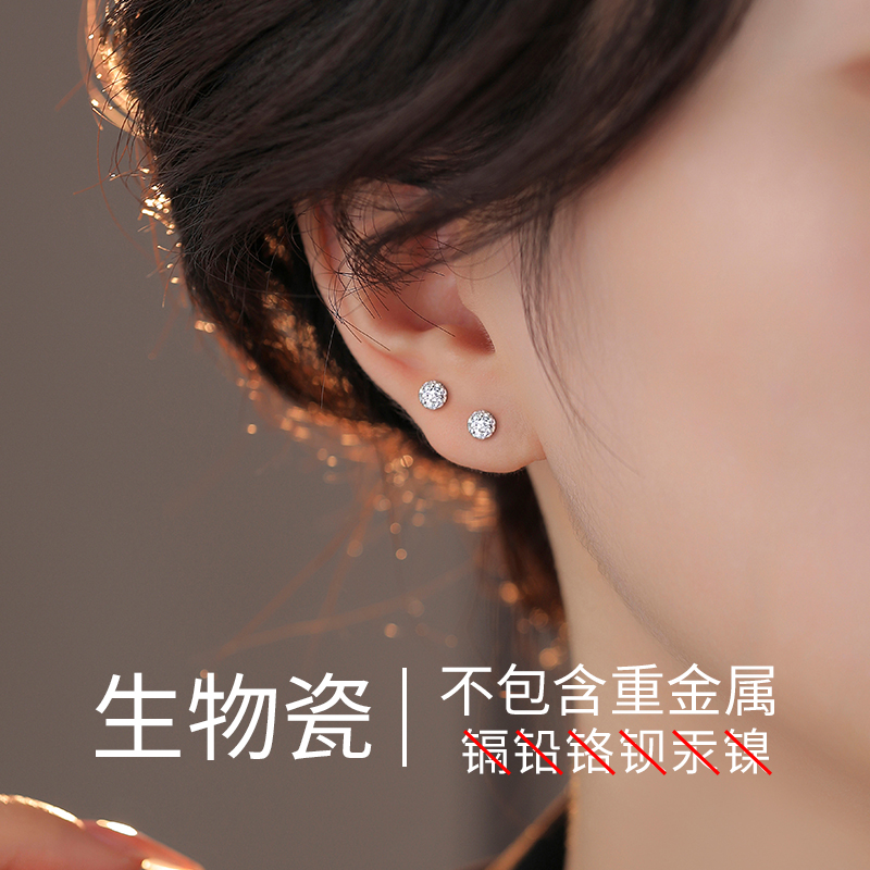 养耳洞生物瓷耳钉女高级感精致耳骨钉超闪耳环耳蜗钉睡觉免摘耳饰