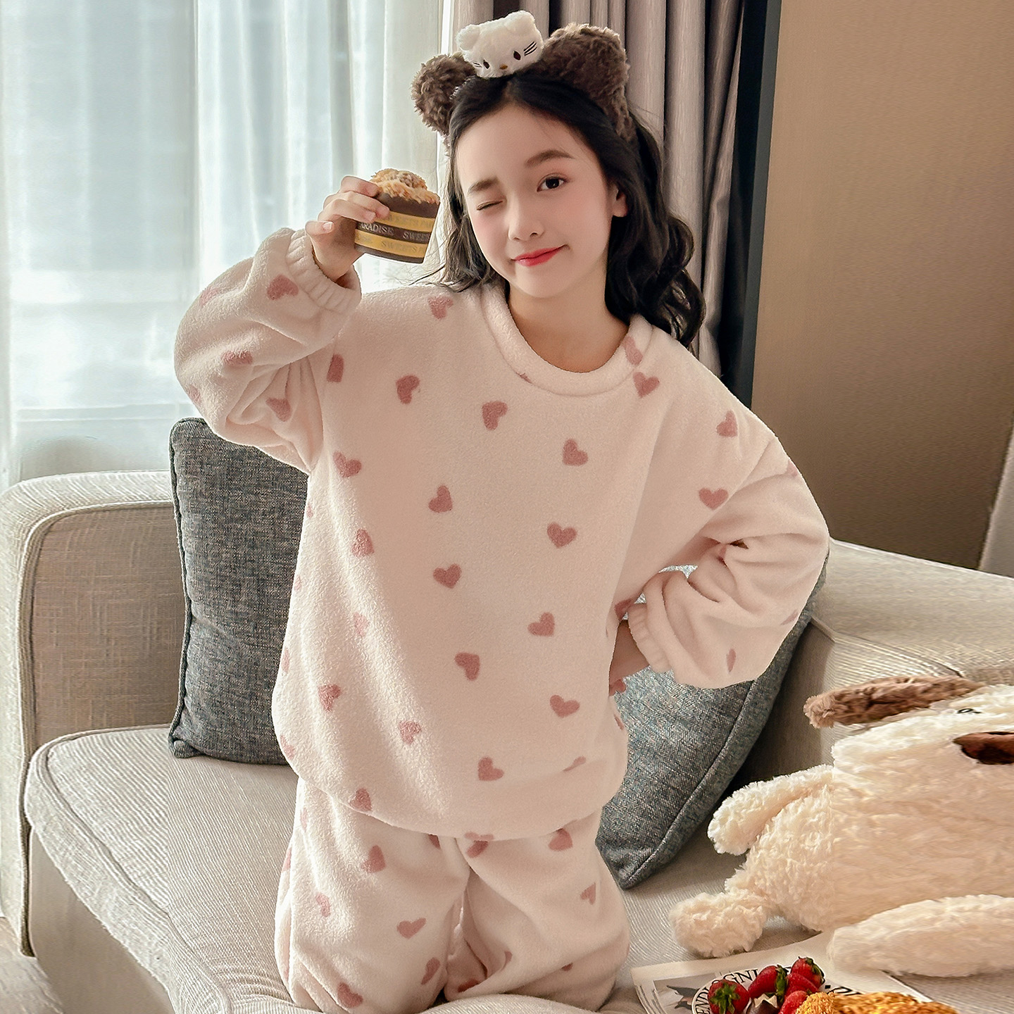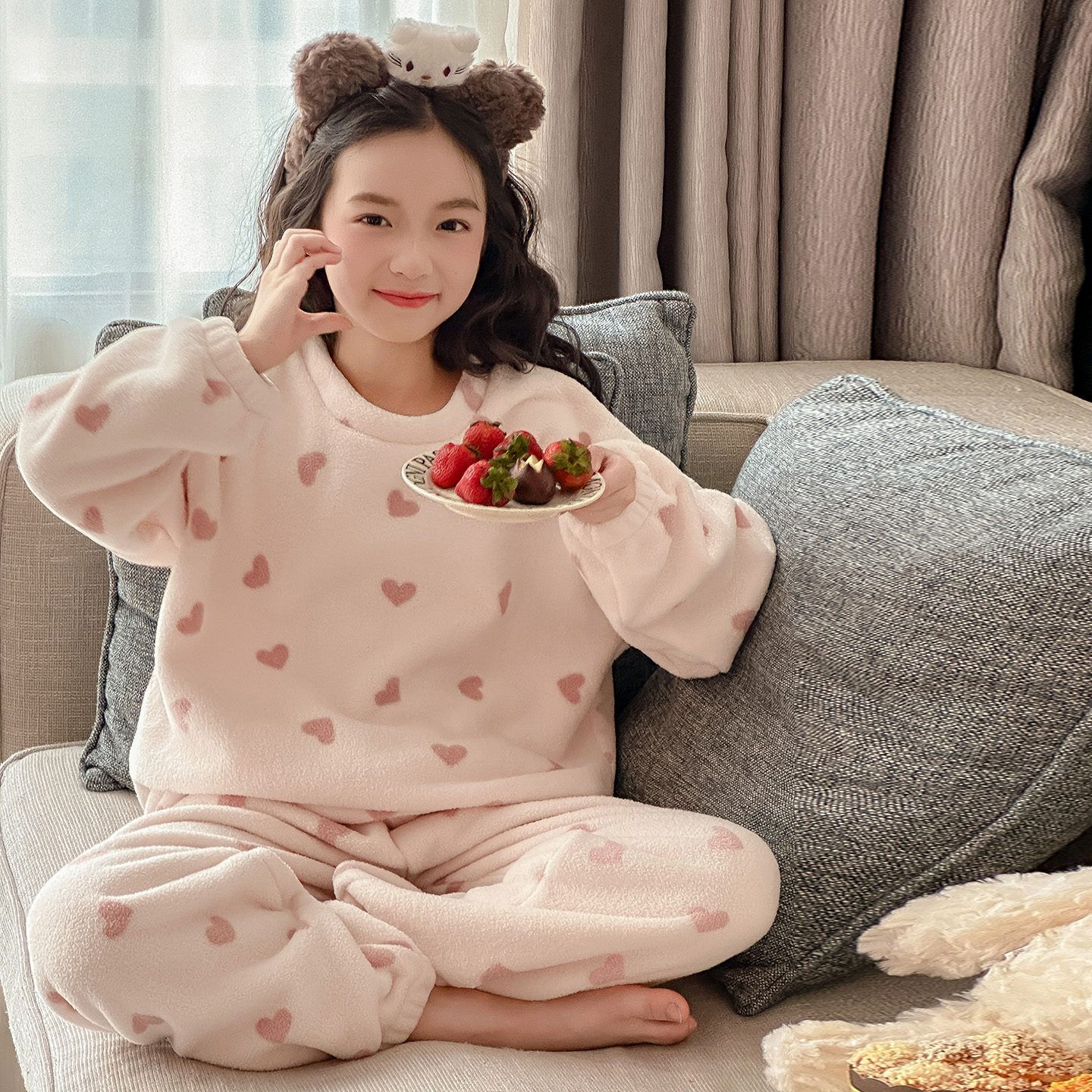 女童珊瑚绒睡衣秋冬2025新款儿童超好看家居服大童女孩法兰绒套装