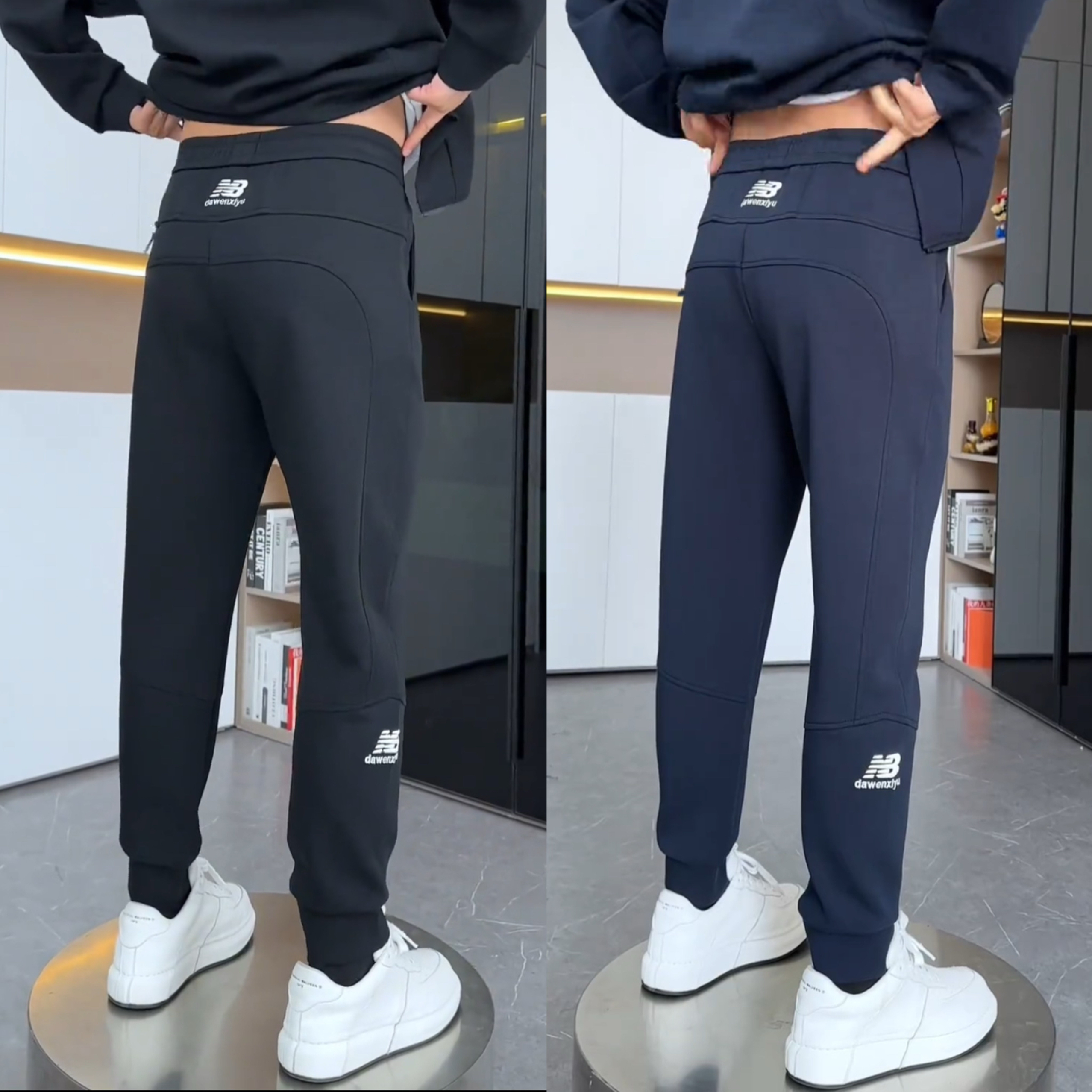 2025春秋简约时尚百搭束脚休闲裤男修身显瘦潮流拼接舒适运动卫裤