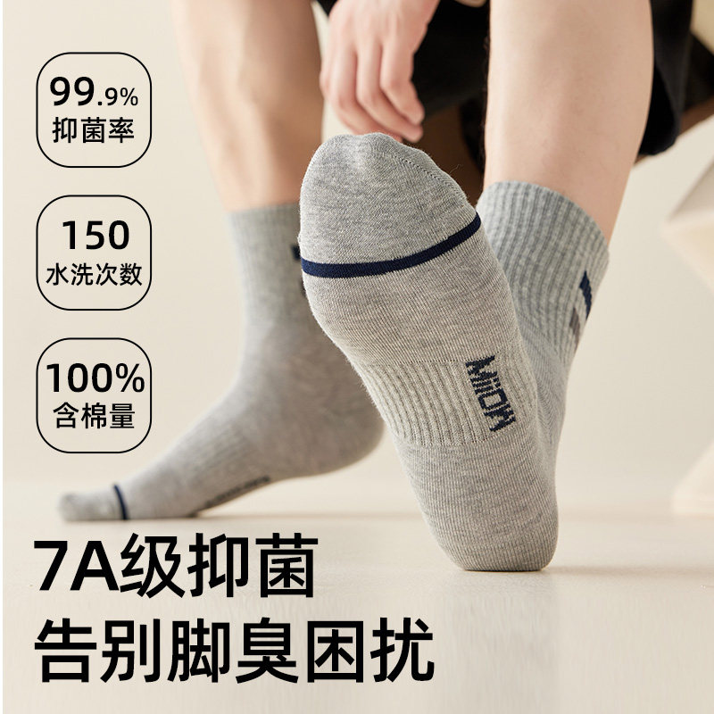 猫人袜子男士纯棉防臭运动中筒袜秋冬季抑菌吸汗透气全棉男款长袜