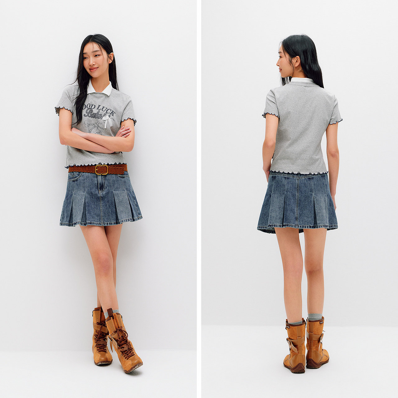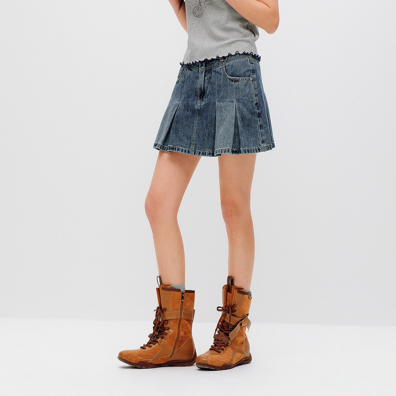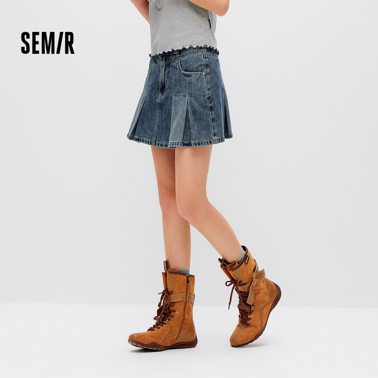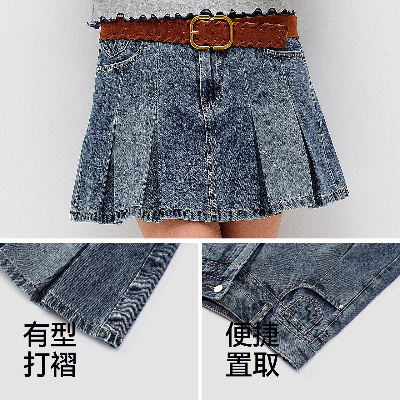 森马甜酷凉感百褶牛仔半身裙女