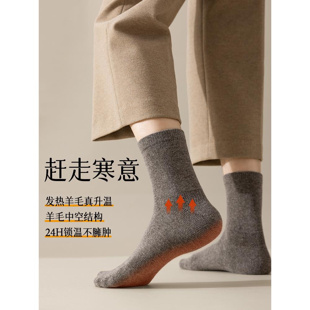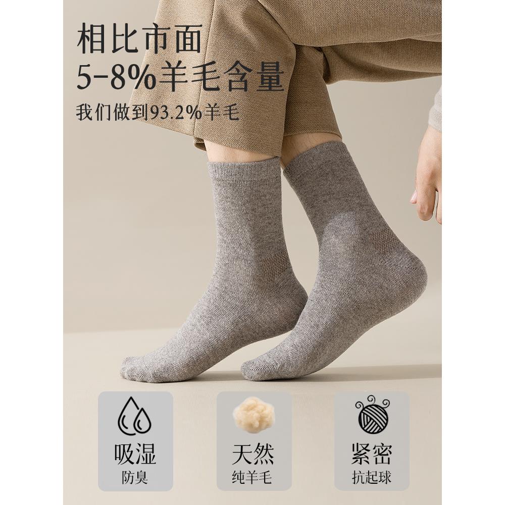 93%纯羊毛袜子男女款秋冬中筒袜加绒加厚保暖东北羊绒厚袜子