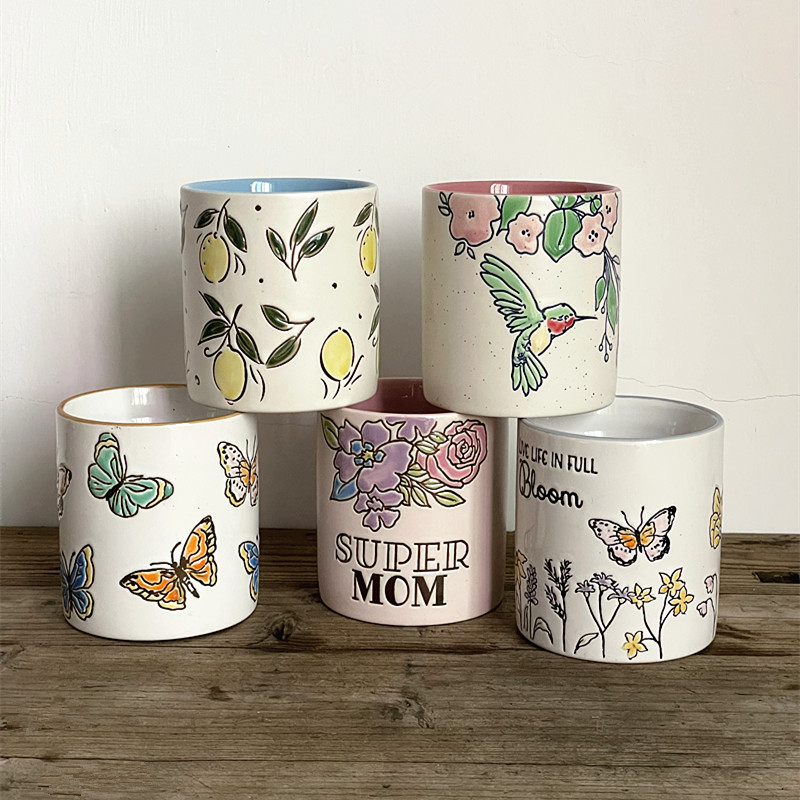 创意日韩式风格陶瓷手绘杯茶水杯牛奶咖啡杯无把杯微波炉陶瓷杯
