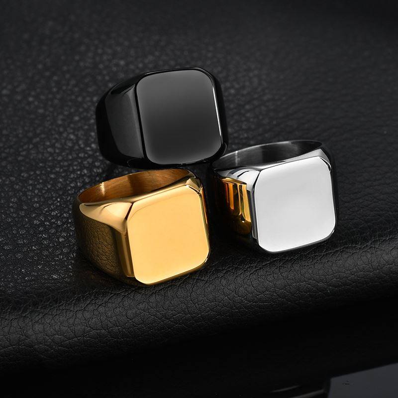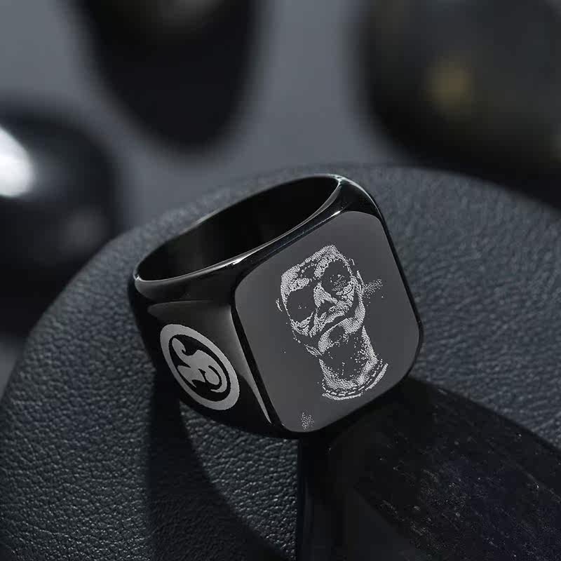 Bluelory Punk Square m Men Rings Engraved Your Name Pho