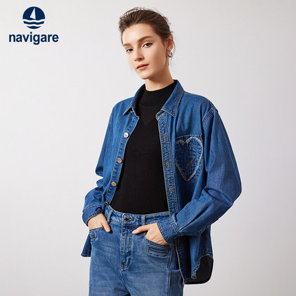 Navigare意大利小帆船蓝色工装牛仔衬衫女秋季新款休闲衬衣外套