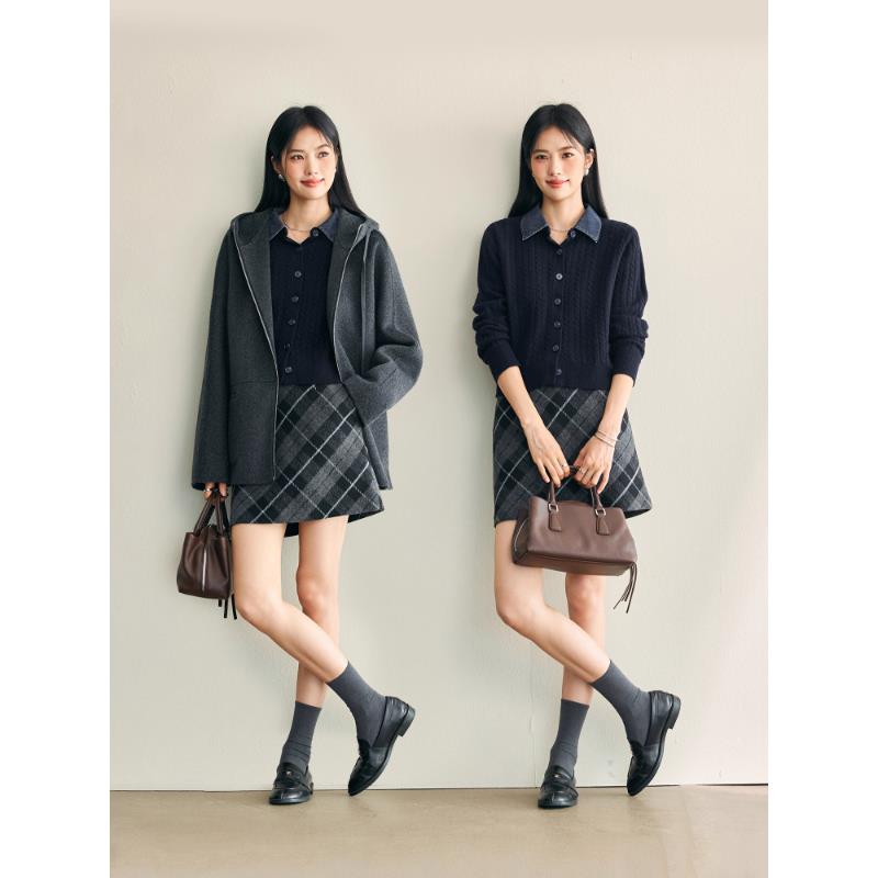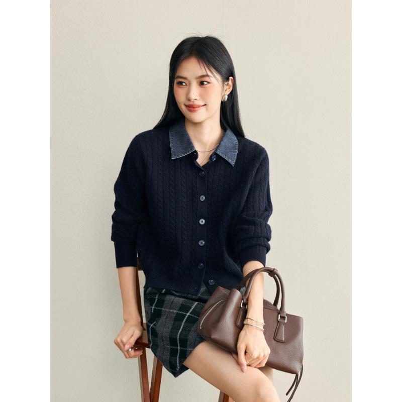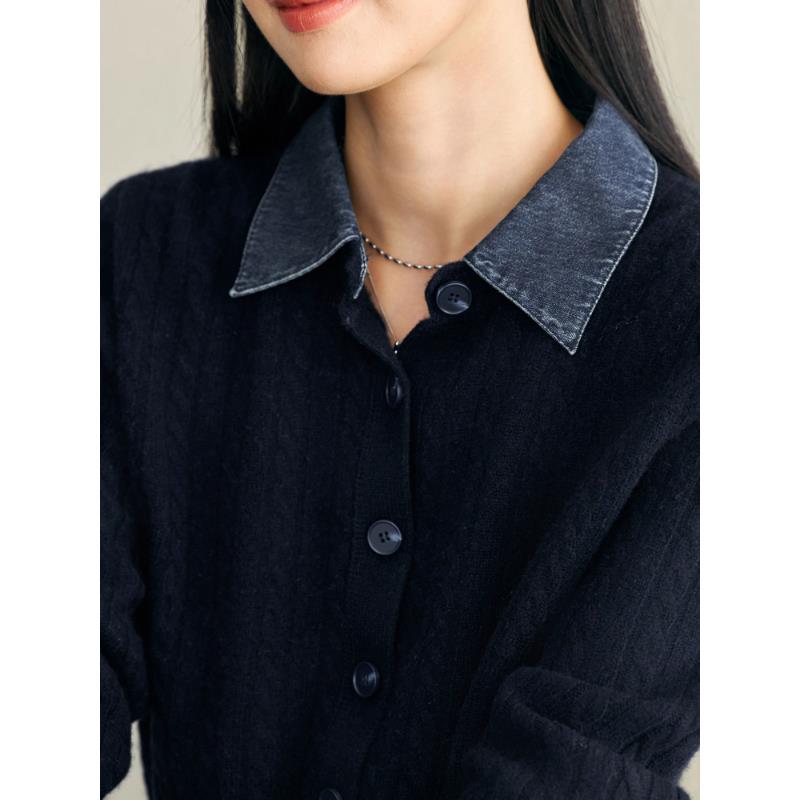 伊折扣假两件绞花针织套头衫秋季新时尚百搭休闲毛衫女1G9932231