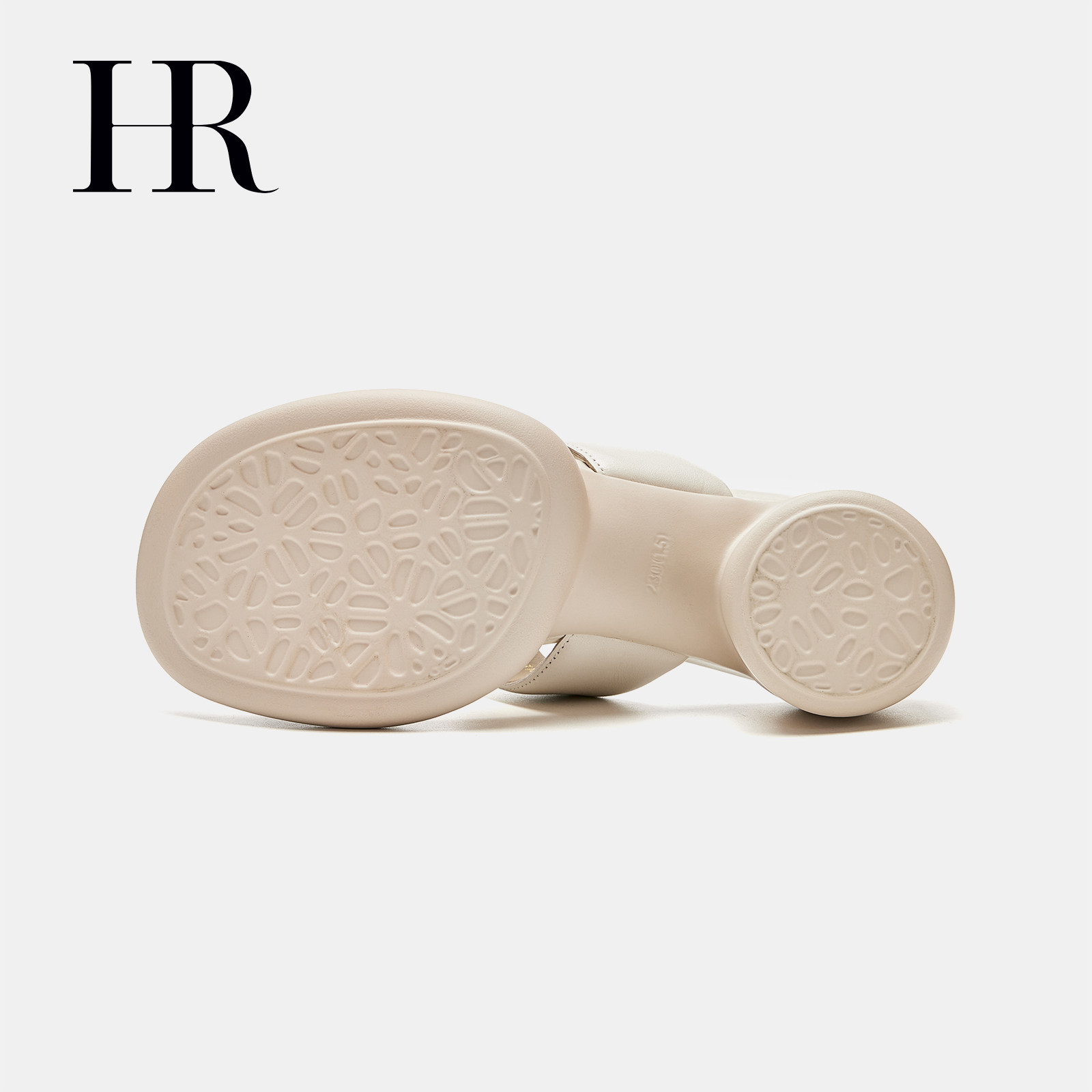 HR赫莲娜女鞋子2025夏季新款时装拖鞋厚底外穿露趾粗跟羊皮一字拖